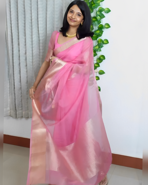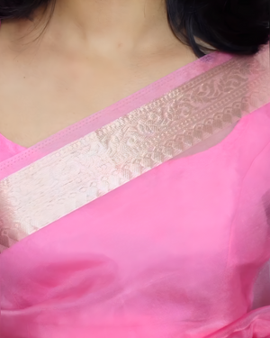 Baby Pink Banarasi Soft Organza Skirt Border Saree | Elegant & Beautiful