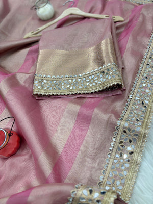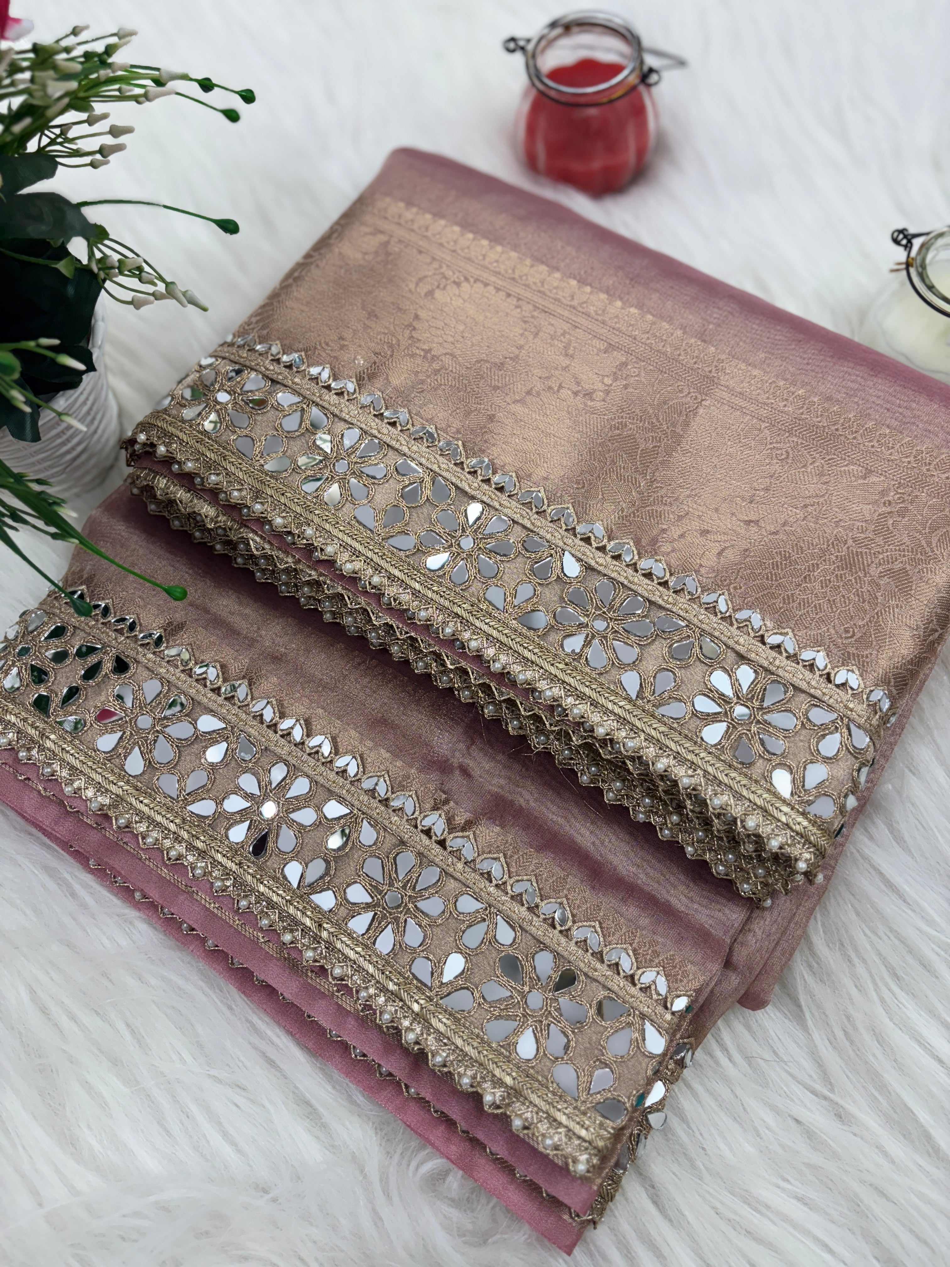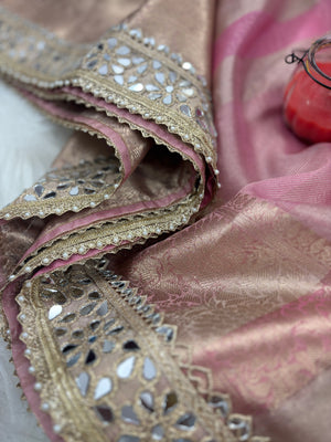 Baby Pink Banarasi Rajkumari Mirror Work Tissue Silk Saree