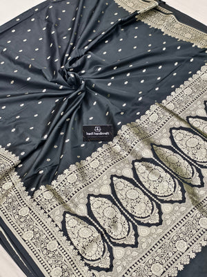 Black Aesthetic Banarasi Mashru Silk Soft Saree | Chunri Buti Saree