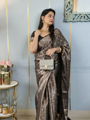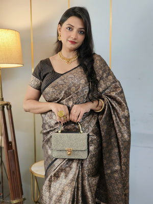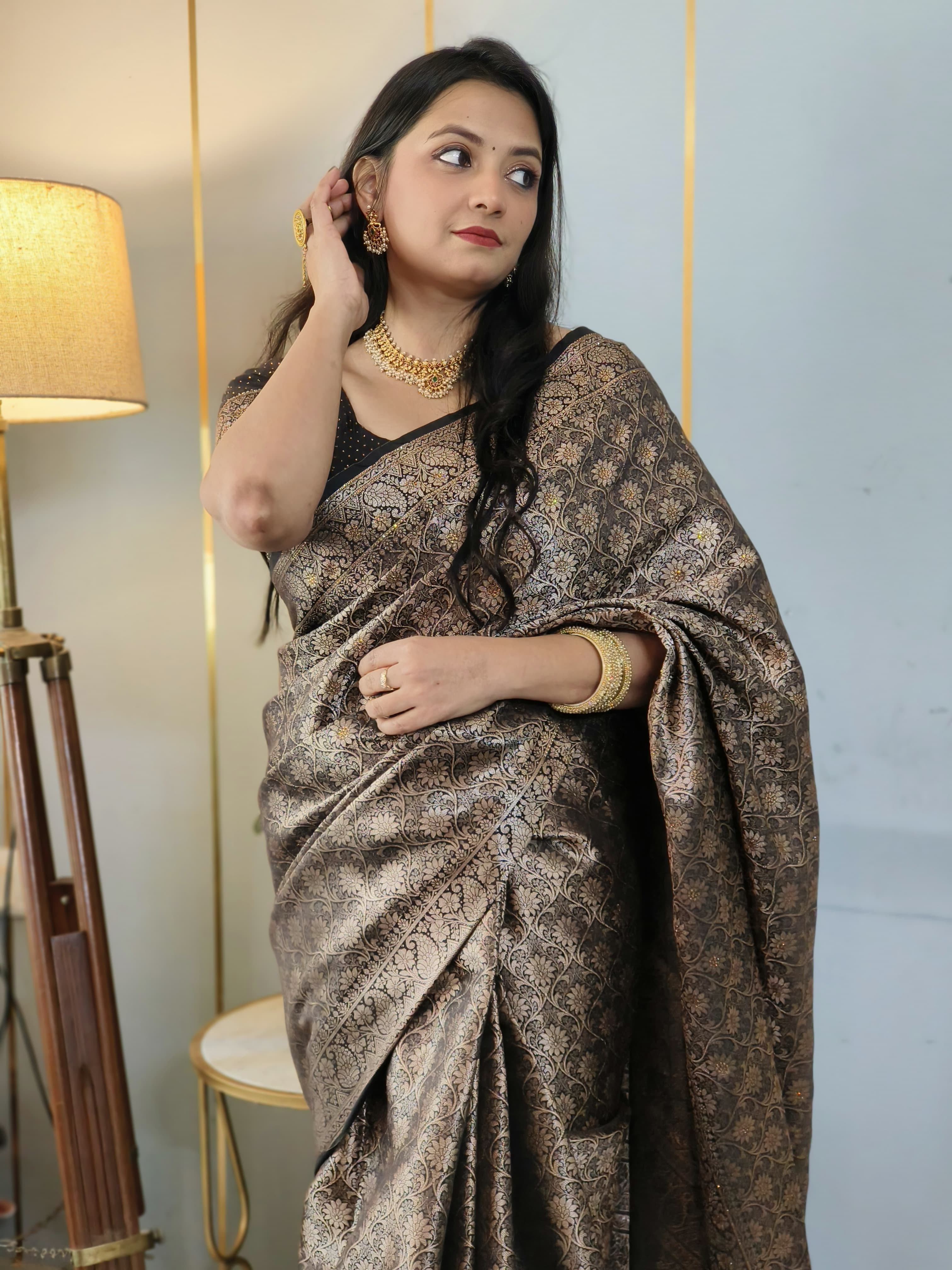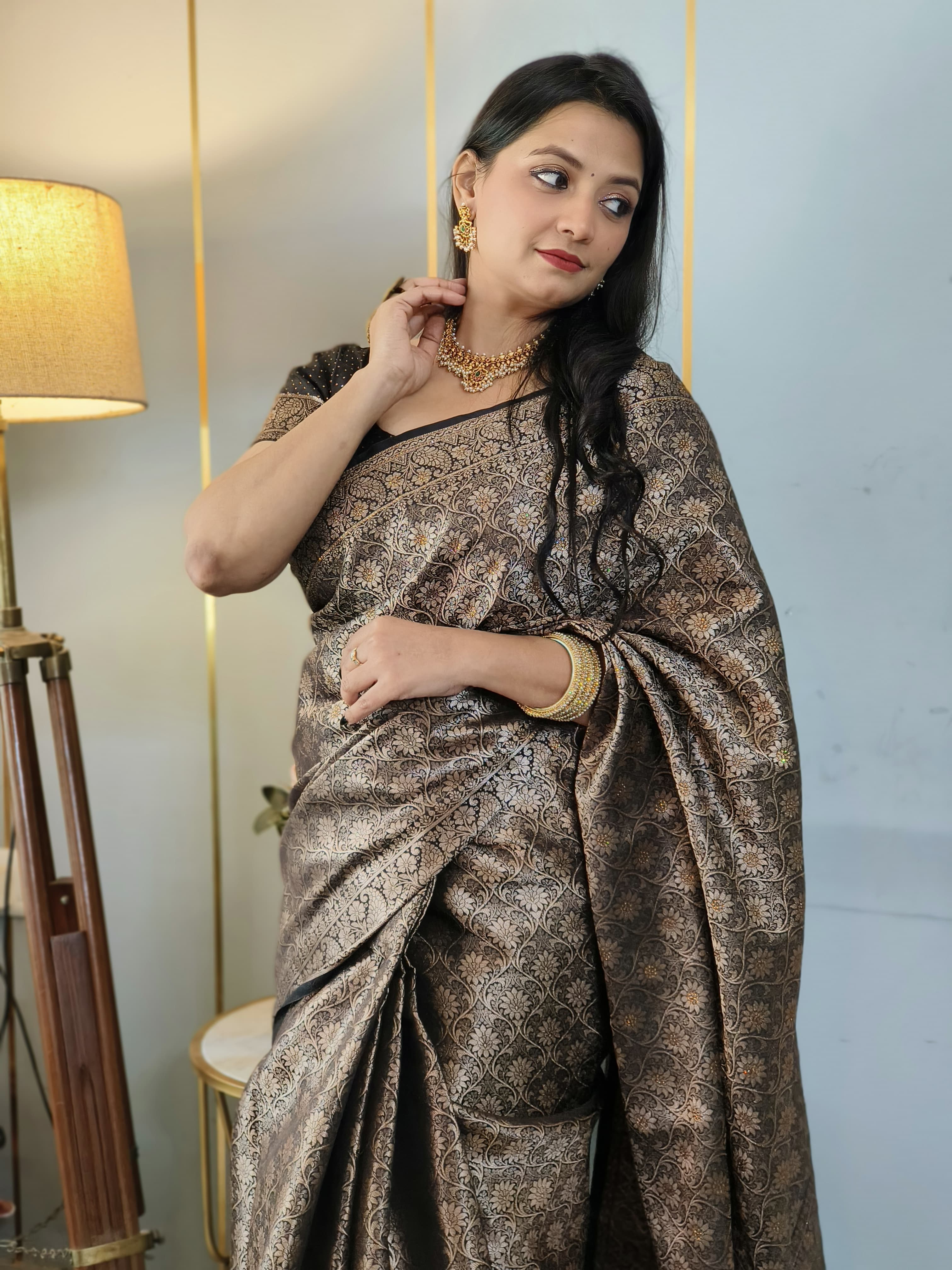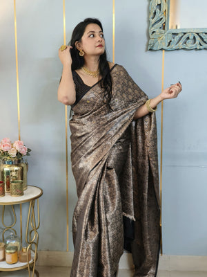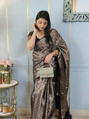 Black Banarasi Soft Silk Saree with Siroski Stone Work Embriodered Blouse & Saree