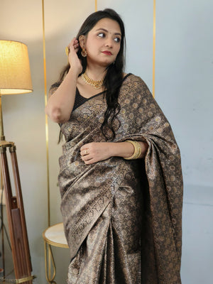 Exclusive Black Banarasi Soft Silk Saree with Siroski Stone Work Embroidered Blouse & Saree gives you a royal appearance & makes you shine with luxury. This vintage soft silk saree is comprised of fine banarasi soft zari threads fabric, emphasizes luxury, and represents both quality and style.