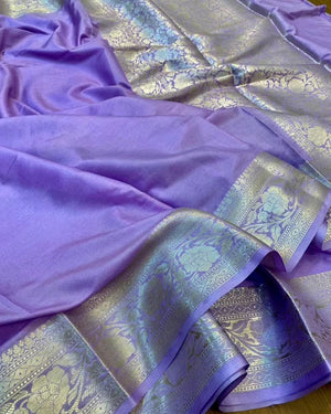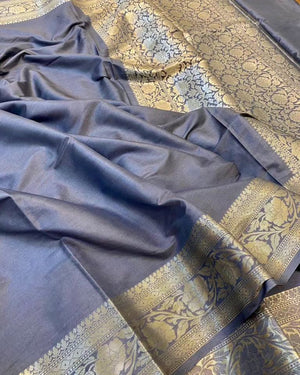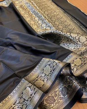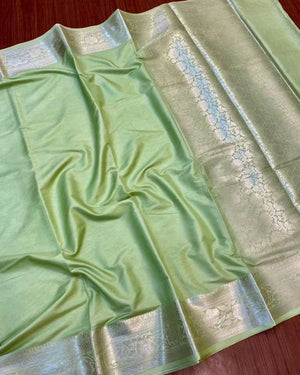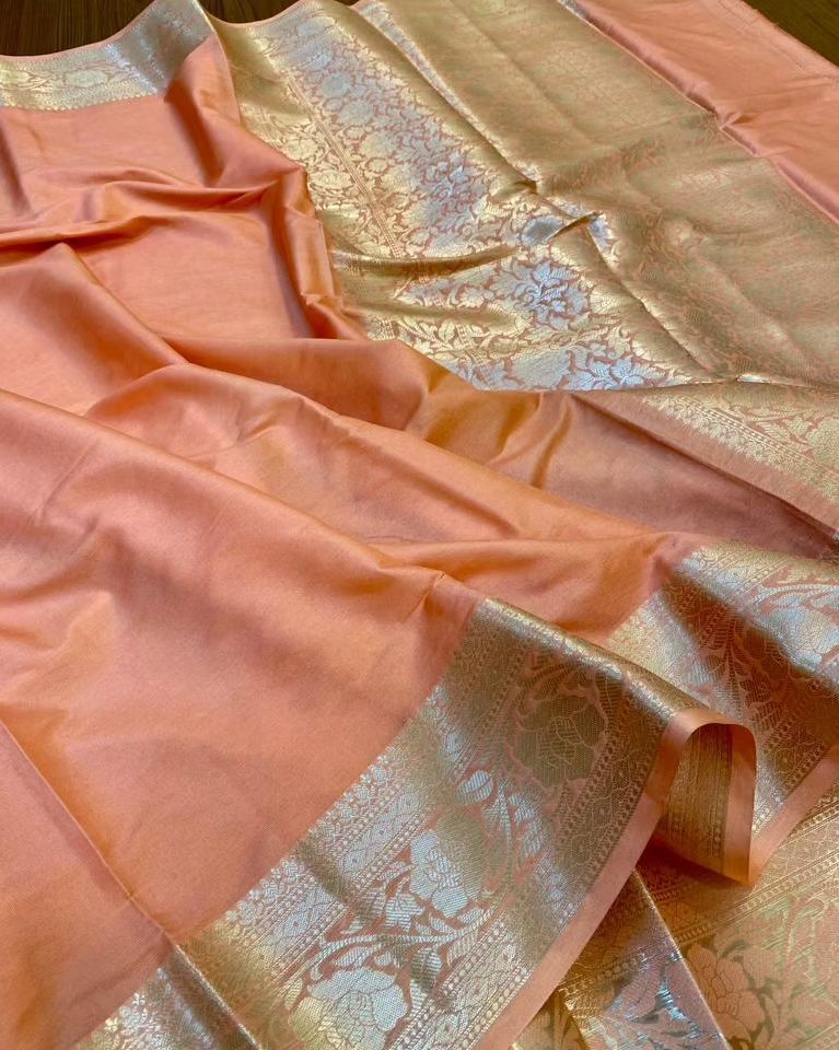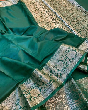 Traditional Banarasi soft semi-katan silk saree woven via water zari is being well-liked by our customers and it's an extraordinary creativity from the weavers of Banaras.