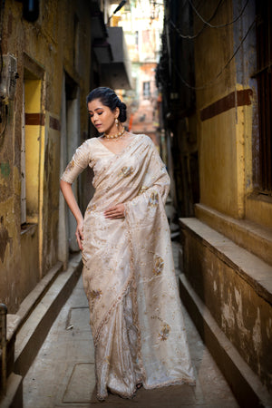Exquisite Banarasi Katdana work designer pure tissue crape silk saree