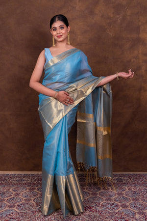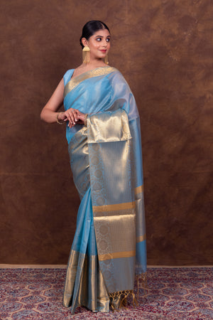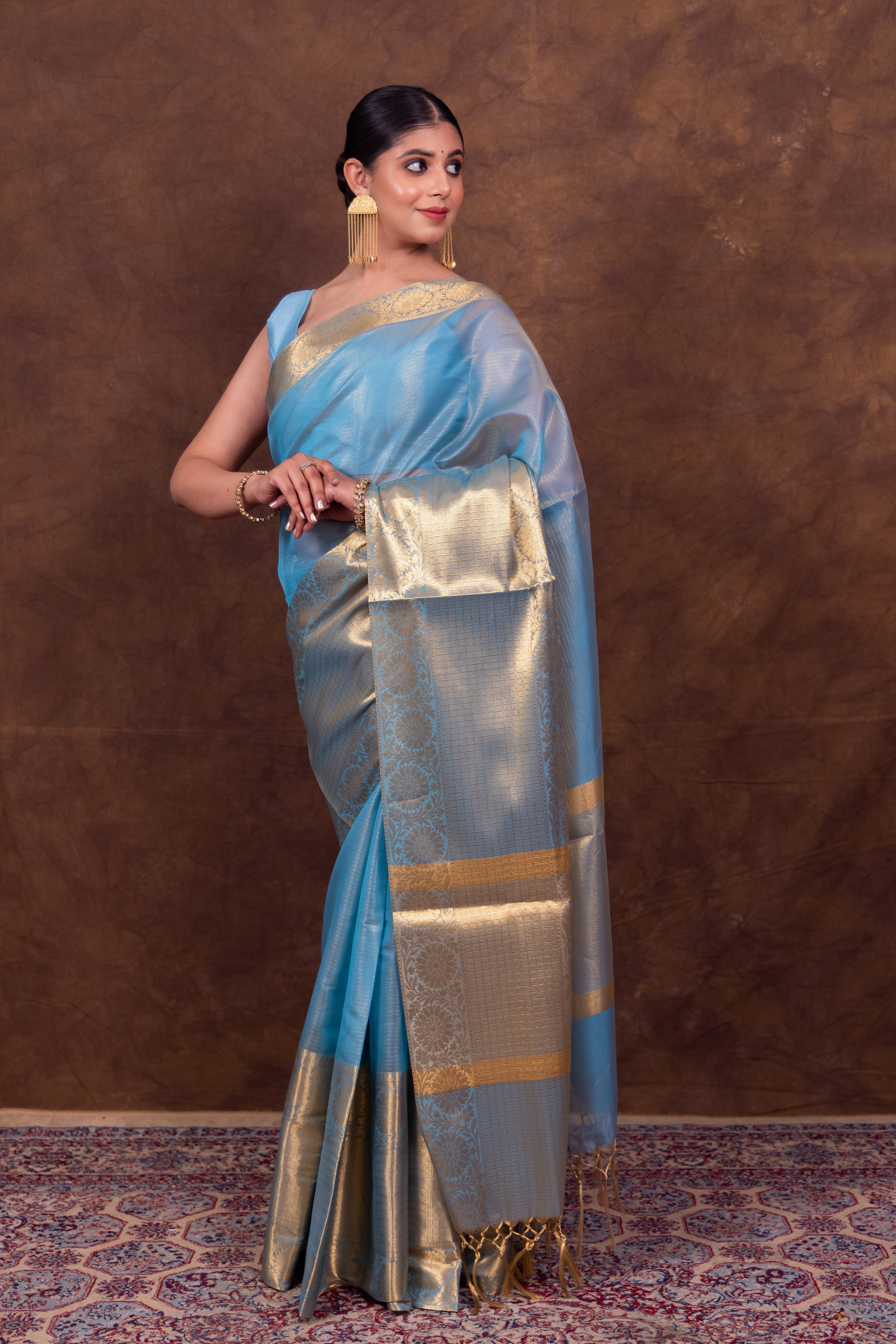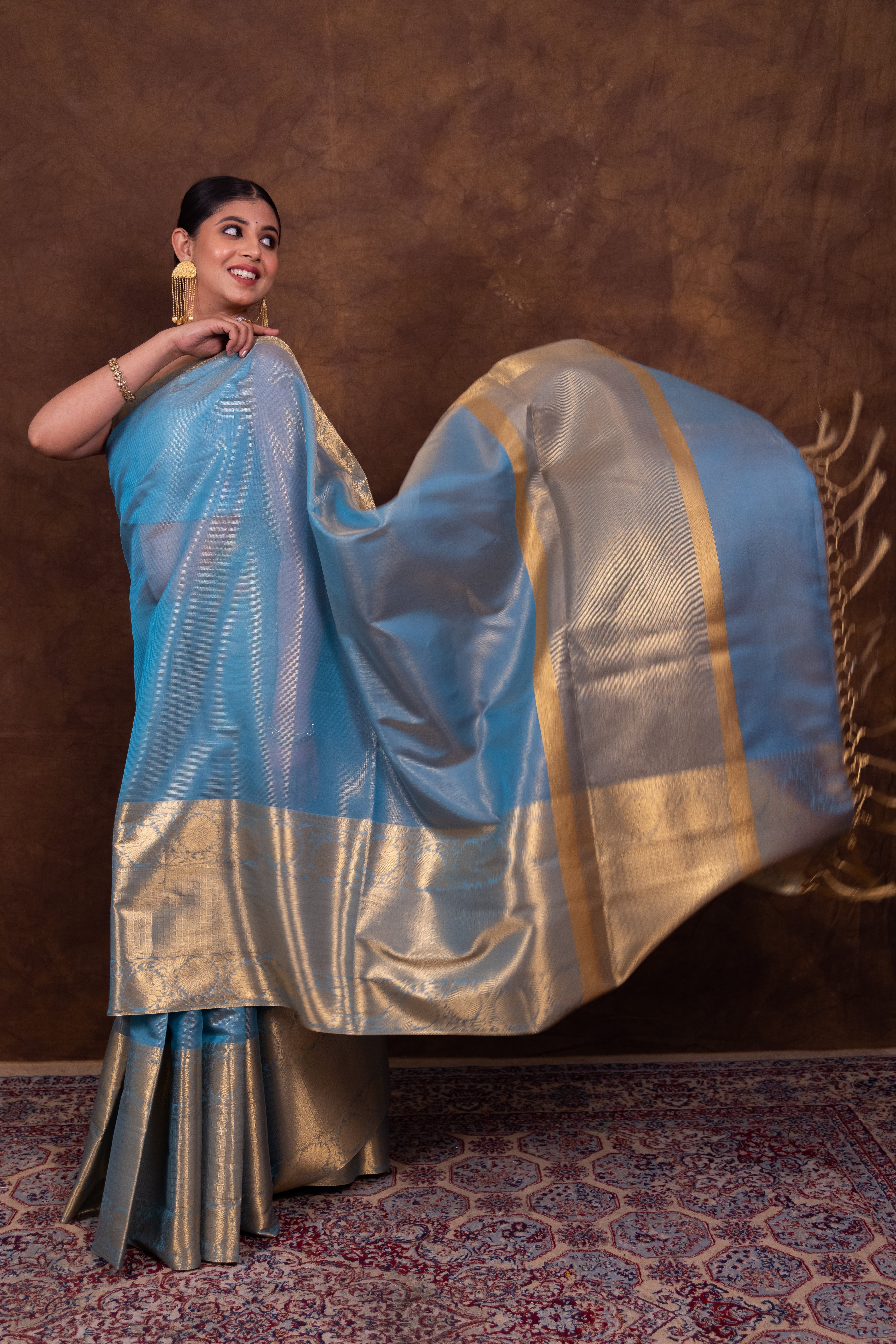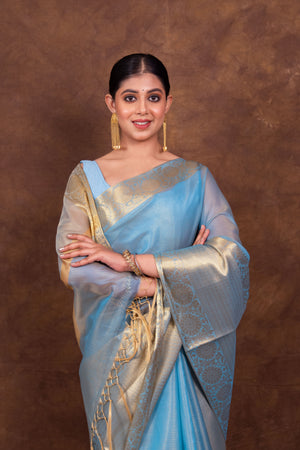 Firozi Blue Styish Banarasi Soft Tissue Silk Saree | Easy To Drape & Pleat