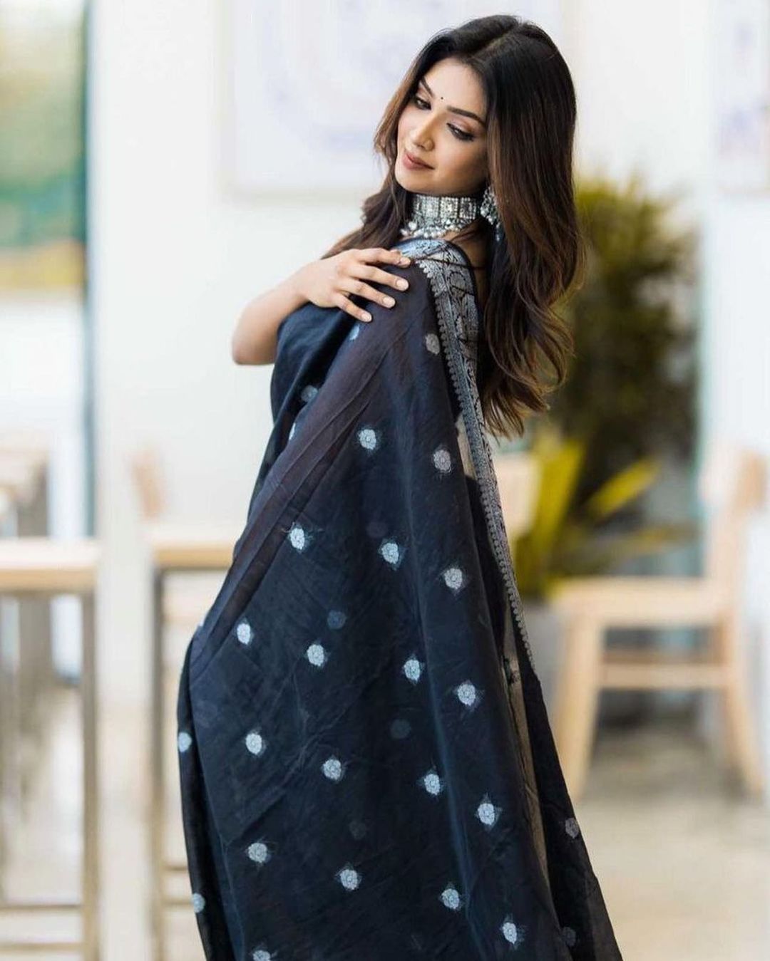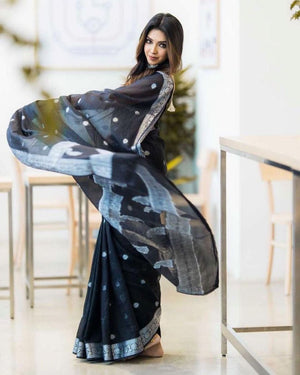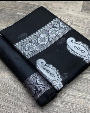 Jade Black Banarasi Semi Georgette Soft Saree with Silver Zari