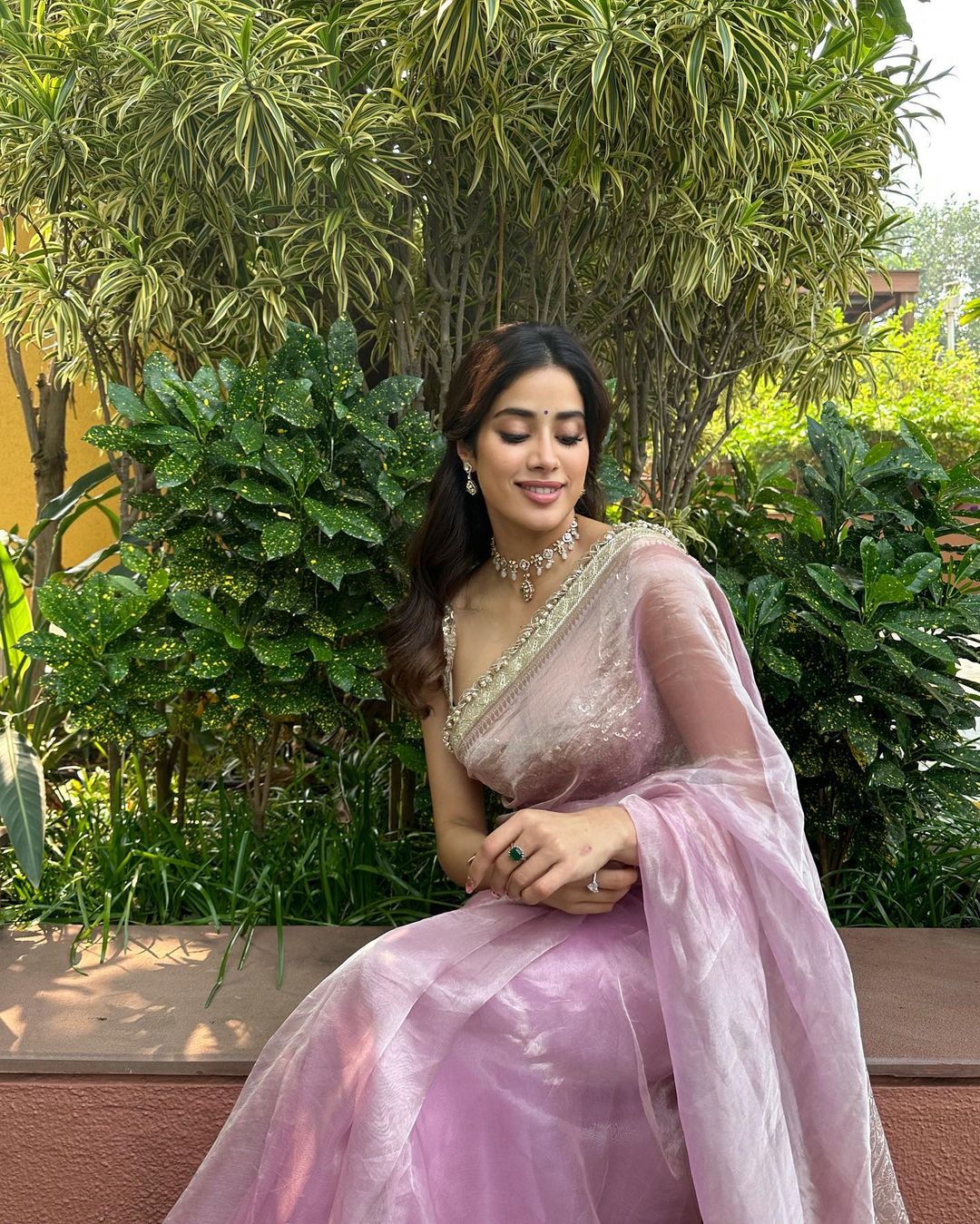 🔷 Please Note: Blouse piece will be same as the saree with running lace borders and will not be the same as what janhvi kapoor has worn.