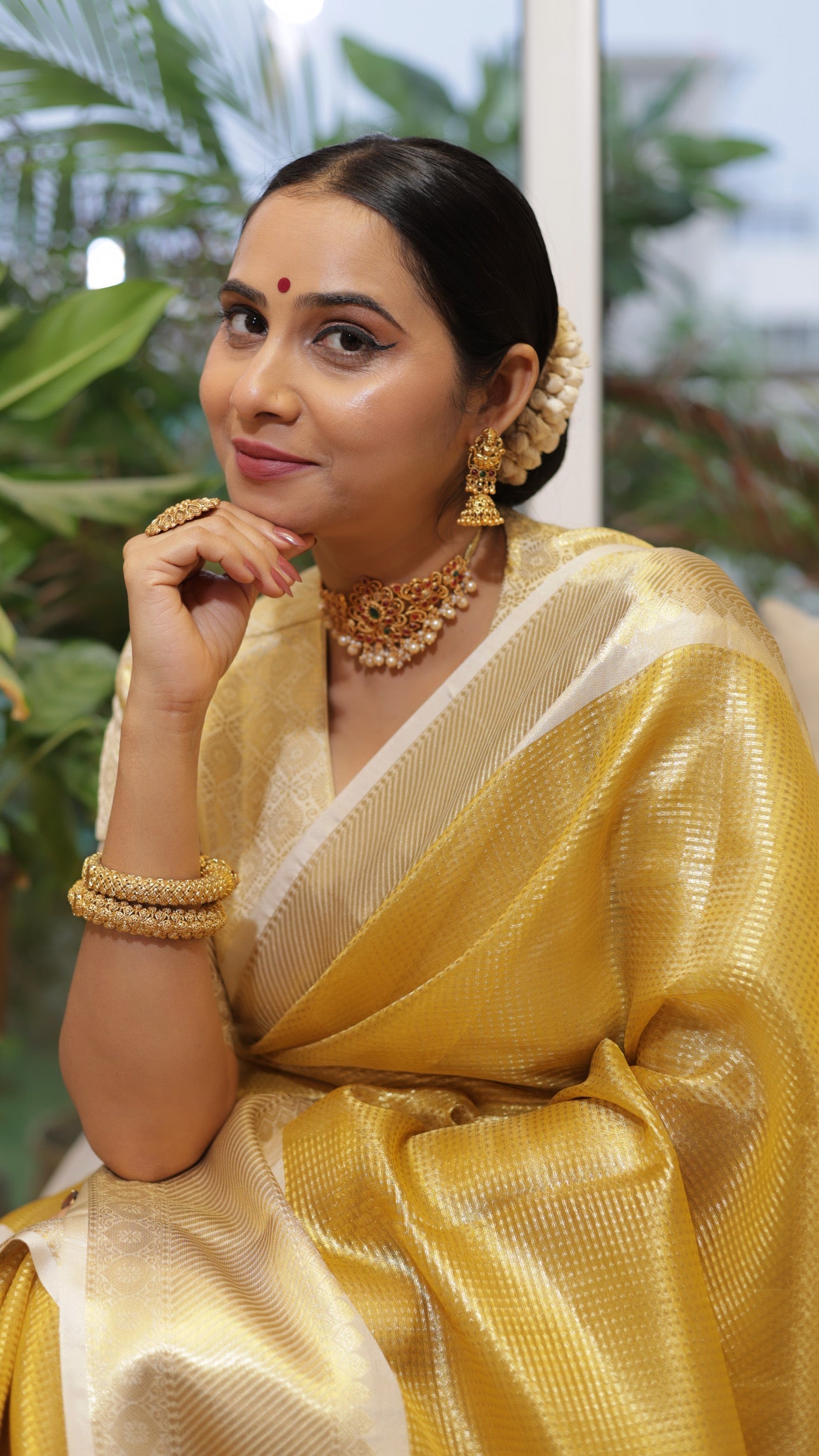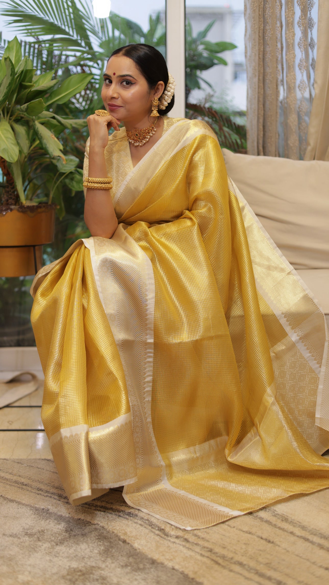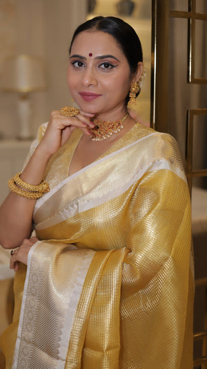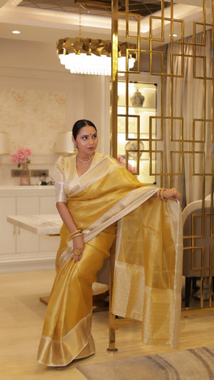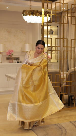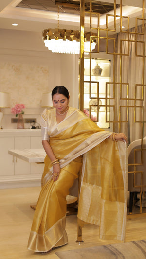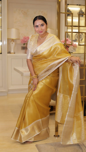 Exclusive Banarasi Glass Tissue Gold Zari Soft Silk Saree | Festive Special