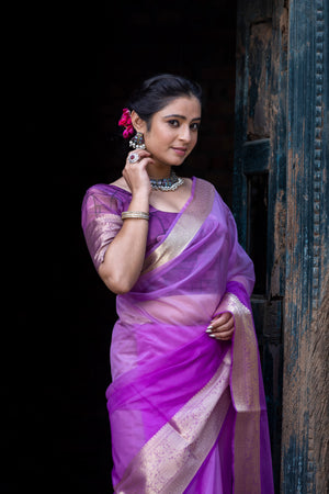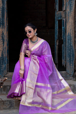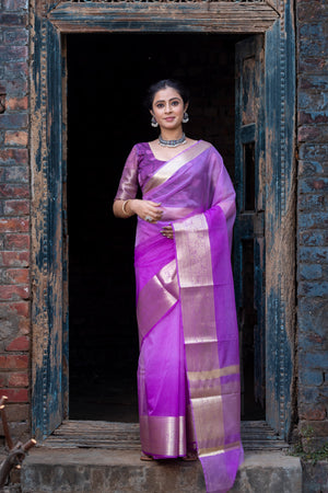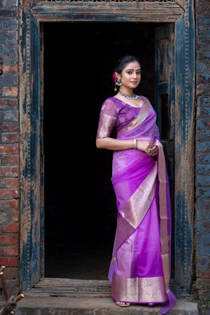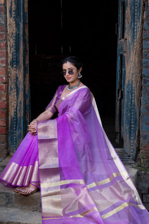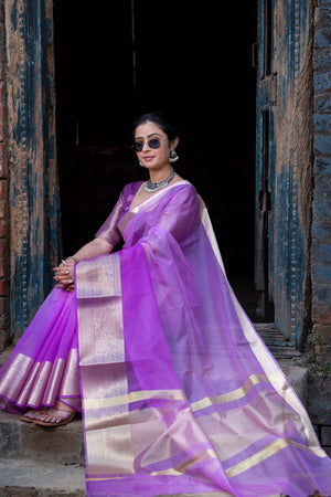 Lavender Pale Banarasi Woven Soft Organza Skirt Border Saree