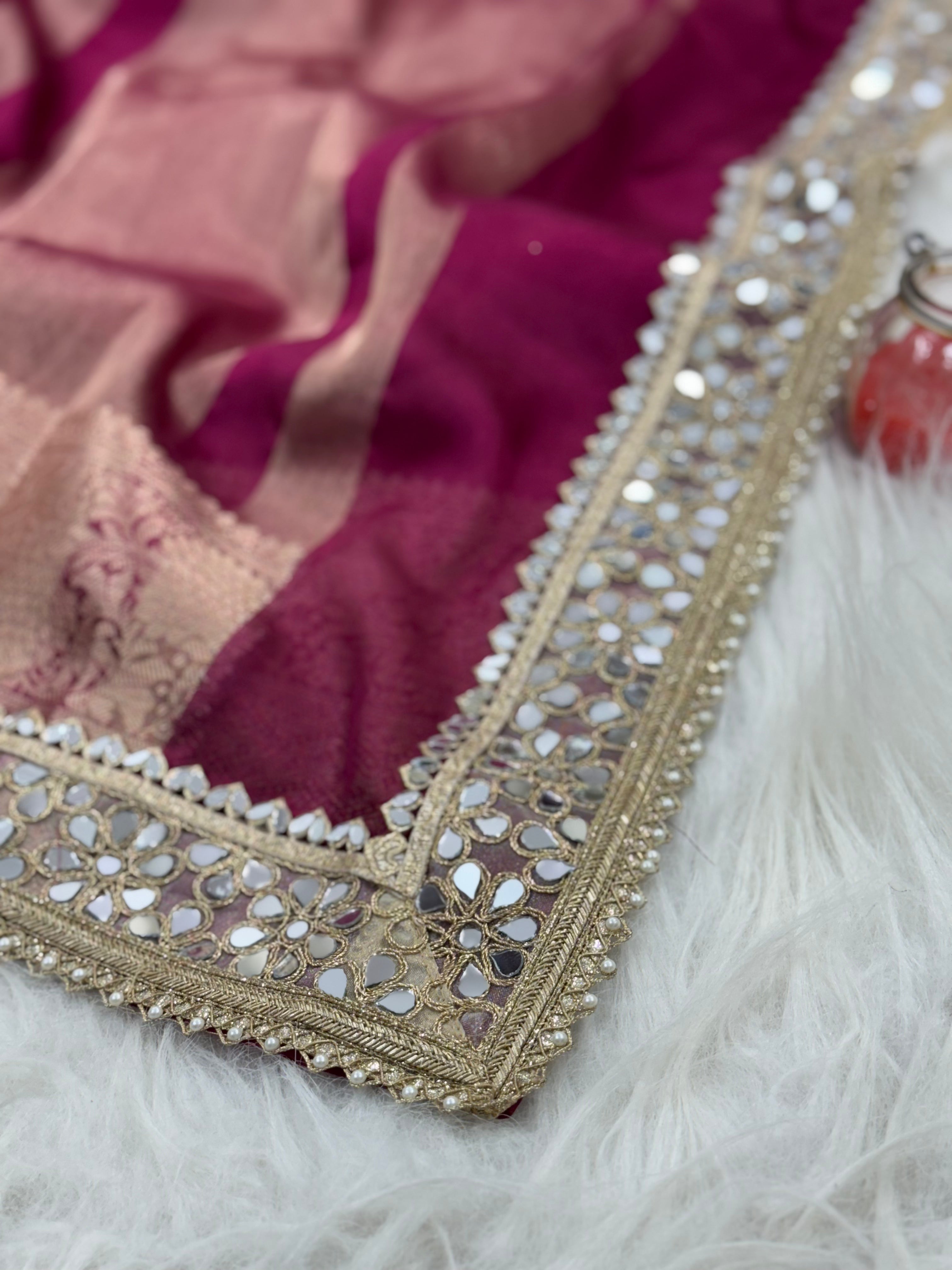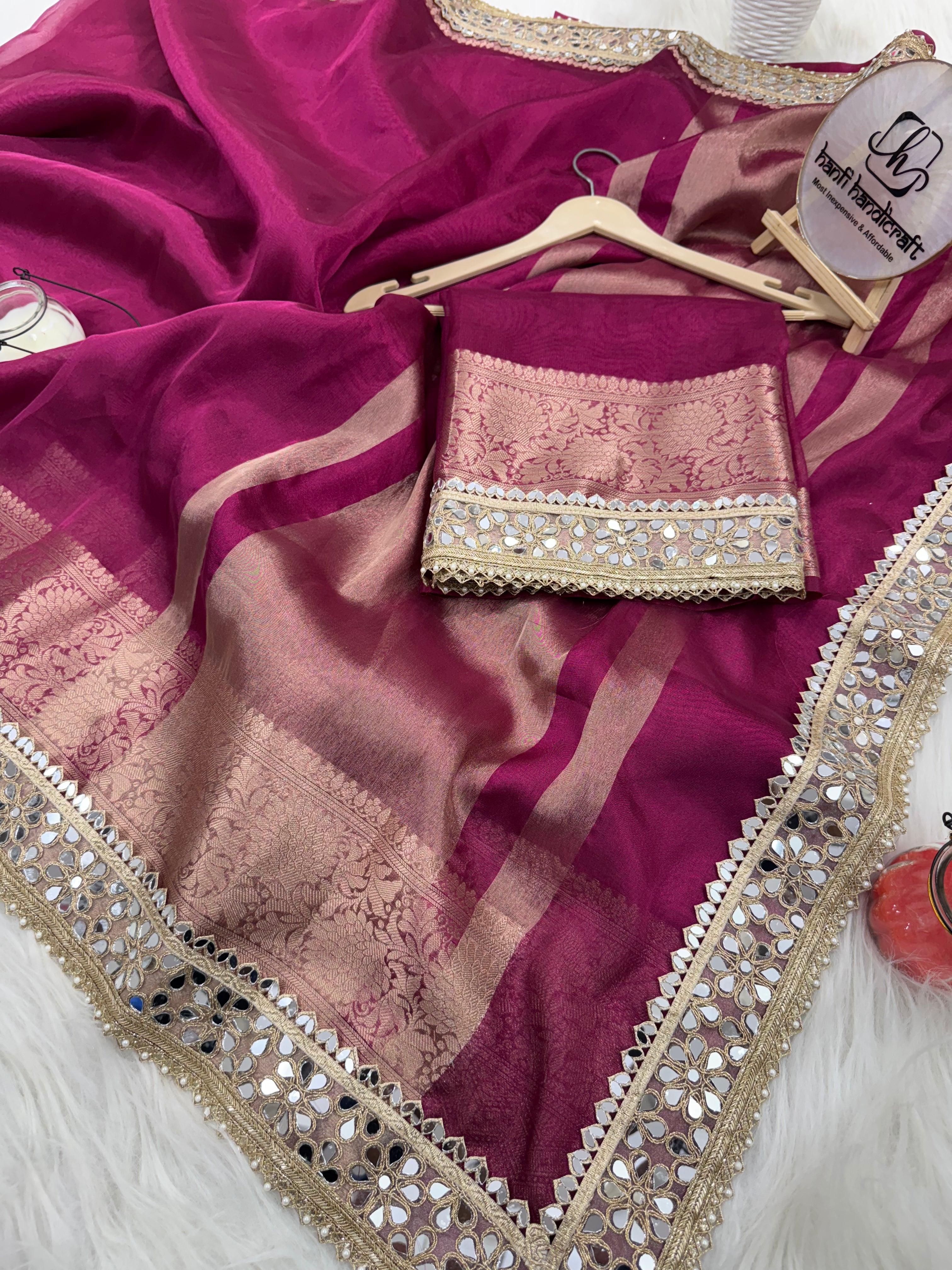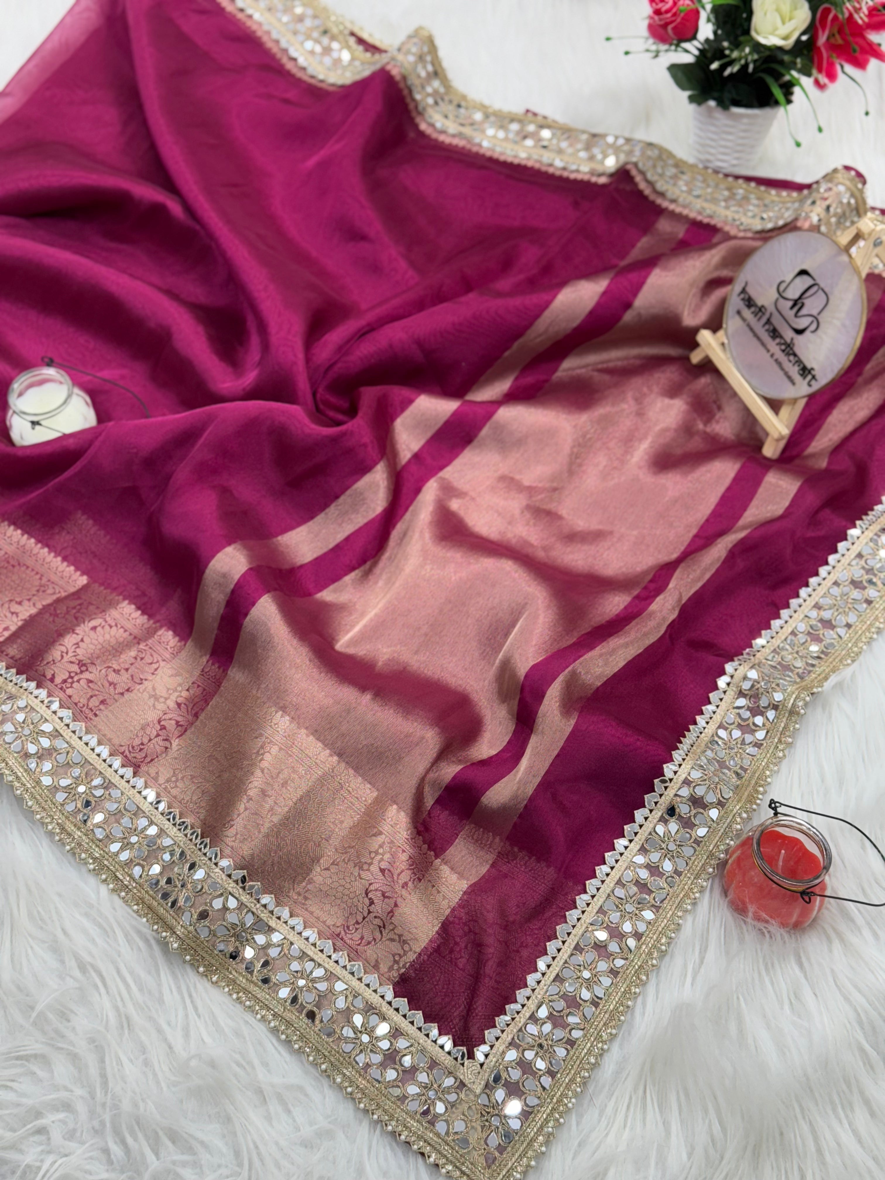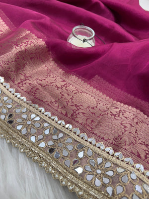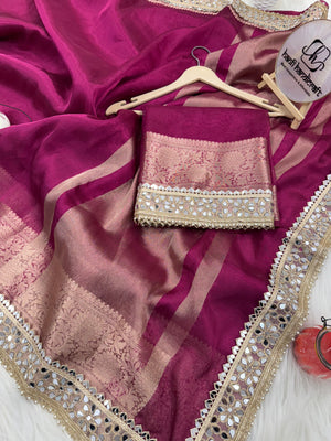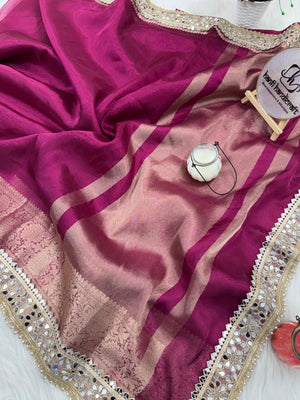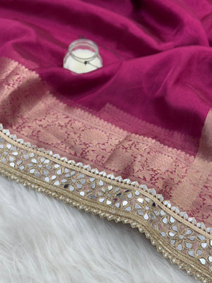 Magenta Pink Banarasi Rajkumari Mirror Work Tissue Silk Saree