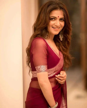 Maroon Red Banarasi Elegant Woven Semi Georgette Soft Saree