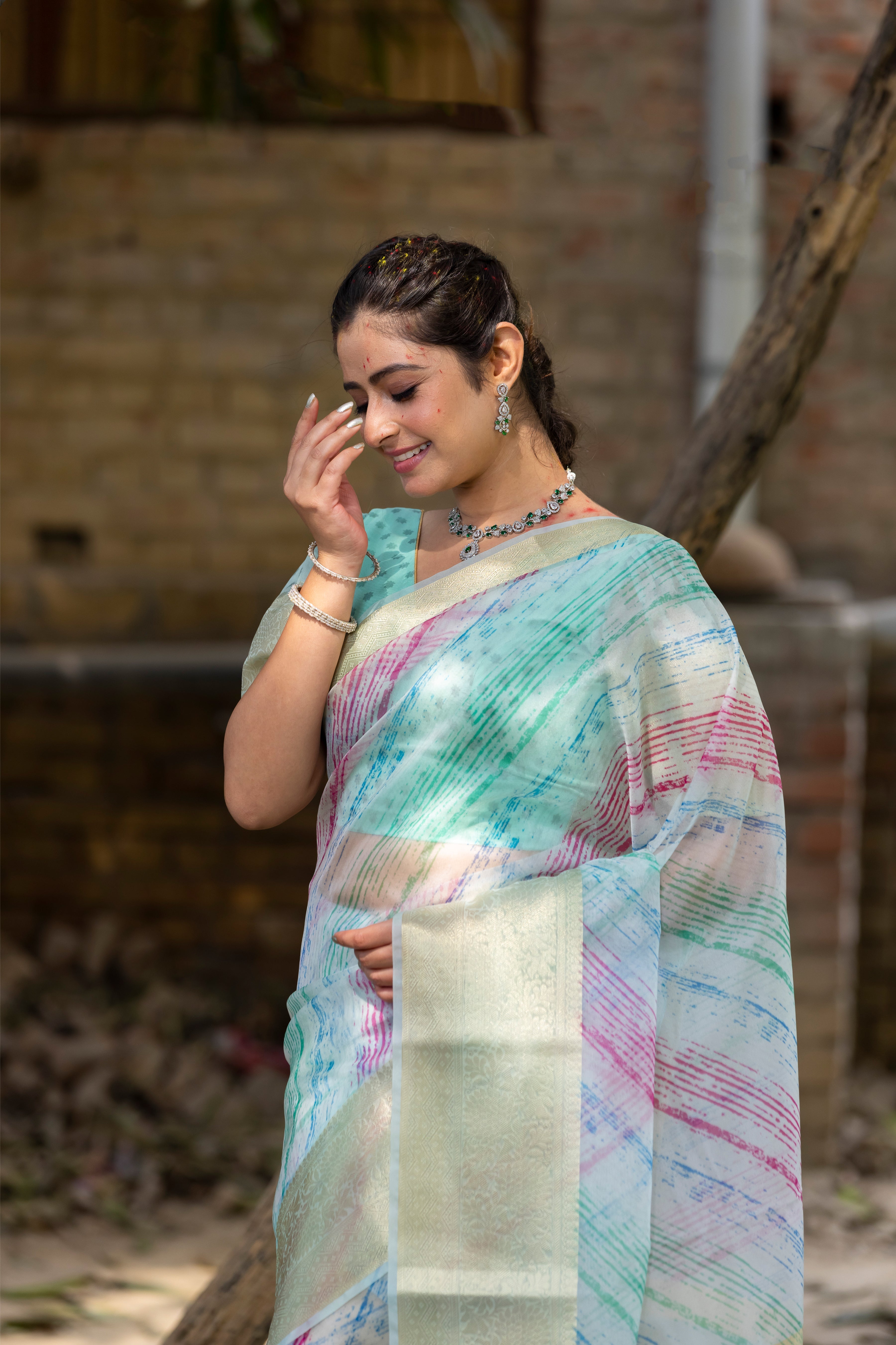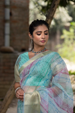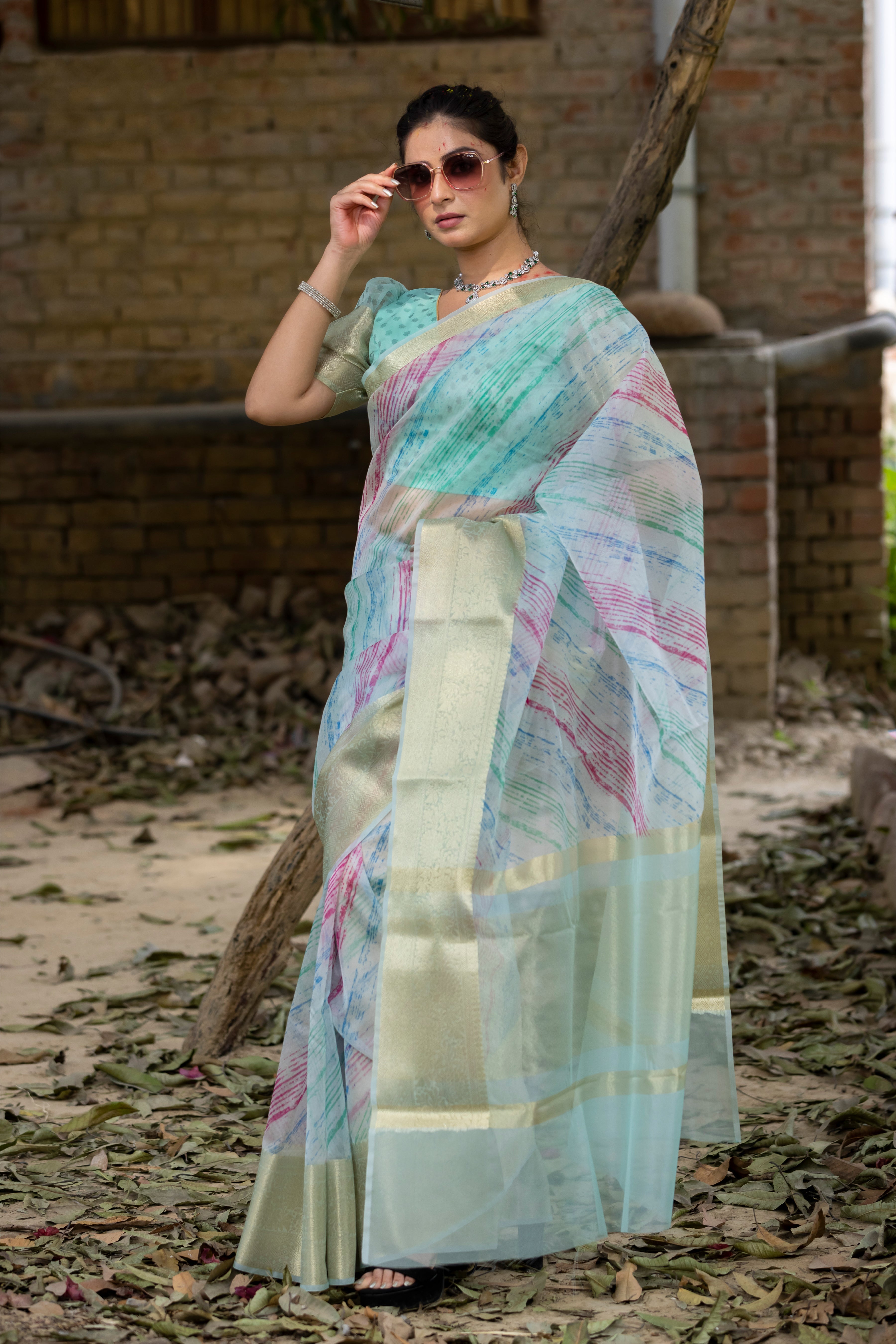 Celebrate vibrant elegance with this multi-color organza saree, adorned with golden zari borders and mesmerizing digital prints. Perfect for the festive spirit, don’t miss out—own this masterpiece before it’s gone! Shop now and make your Occasion unforgettable! ✨