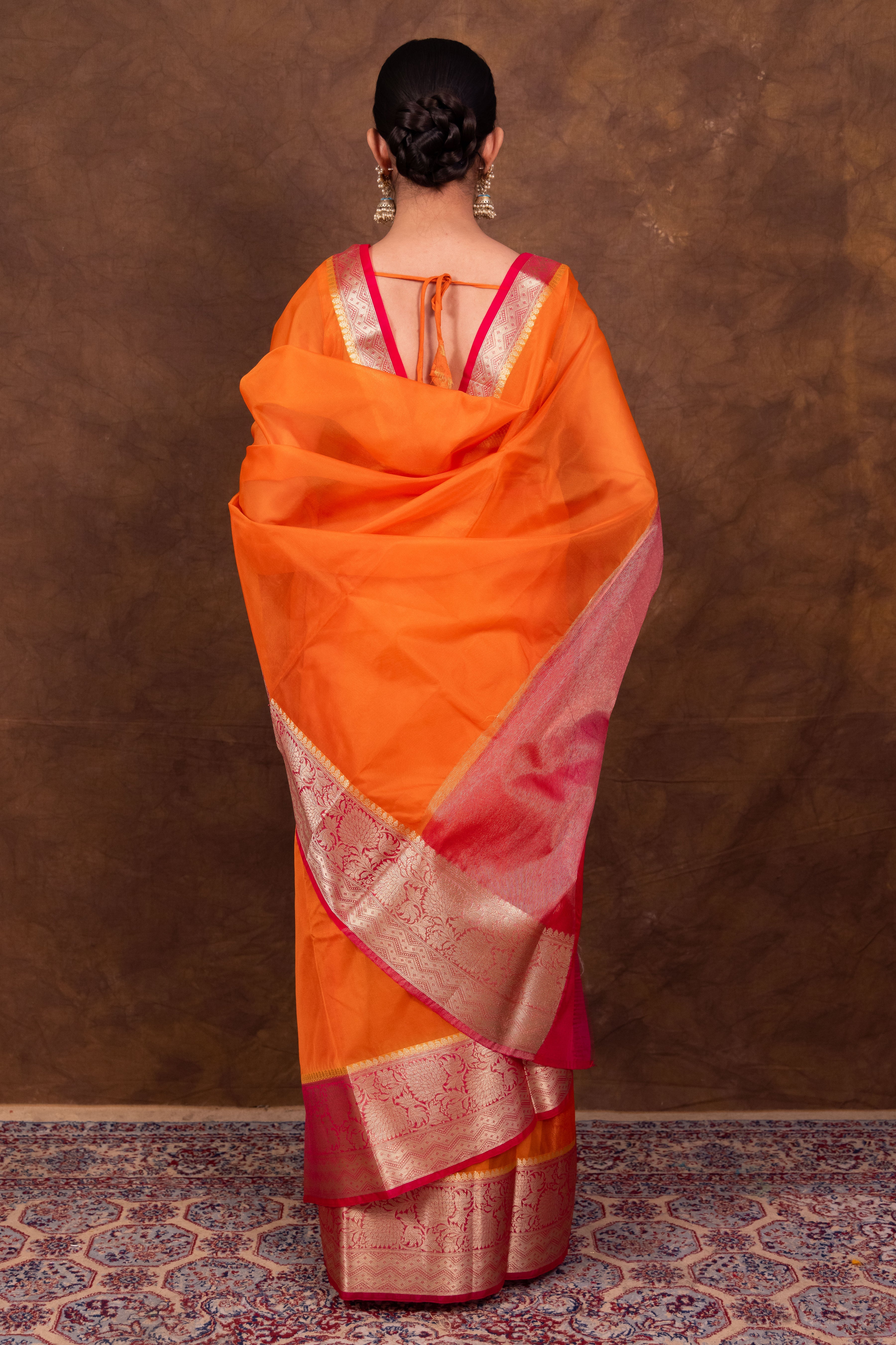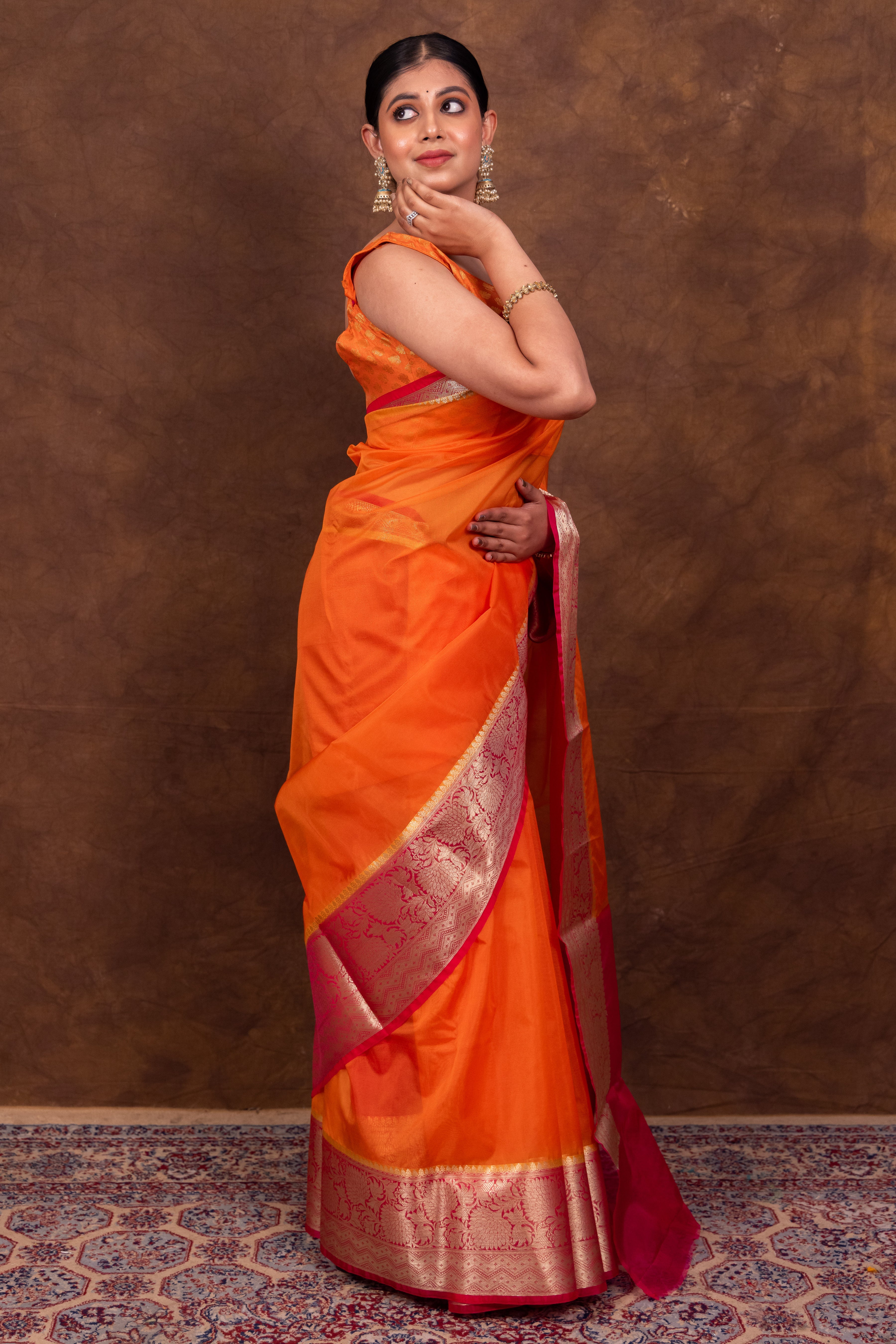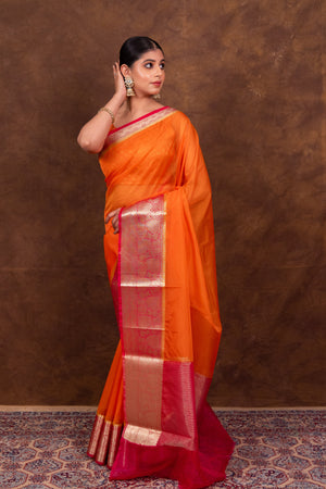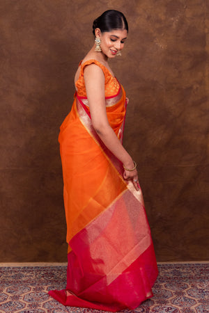 Orange & Rani Banarasi Skirt Border Soft Organza Saree | Body Hugging Classic Saree For All Occasions