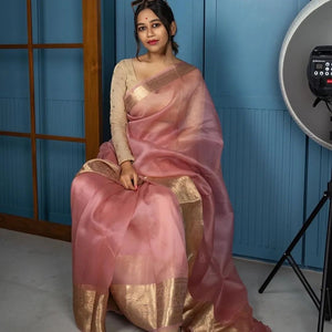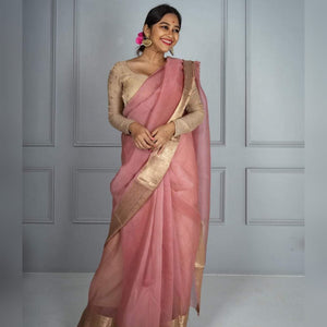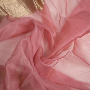 Peach Pink Banarasi Woven Skirt Border Soft Organza Saree | From The Weavers Of Banaras