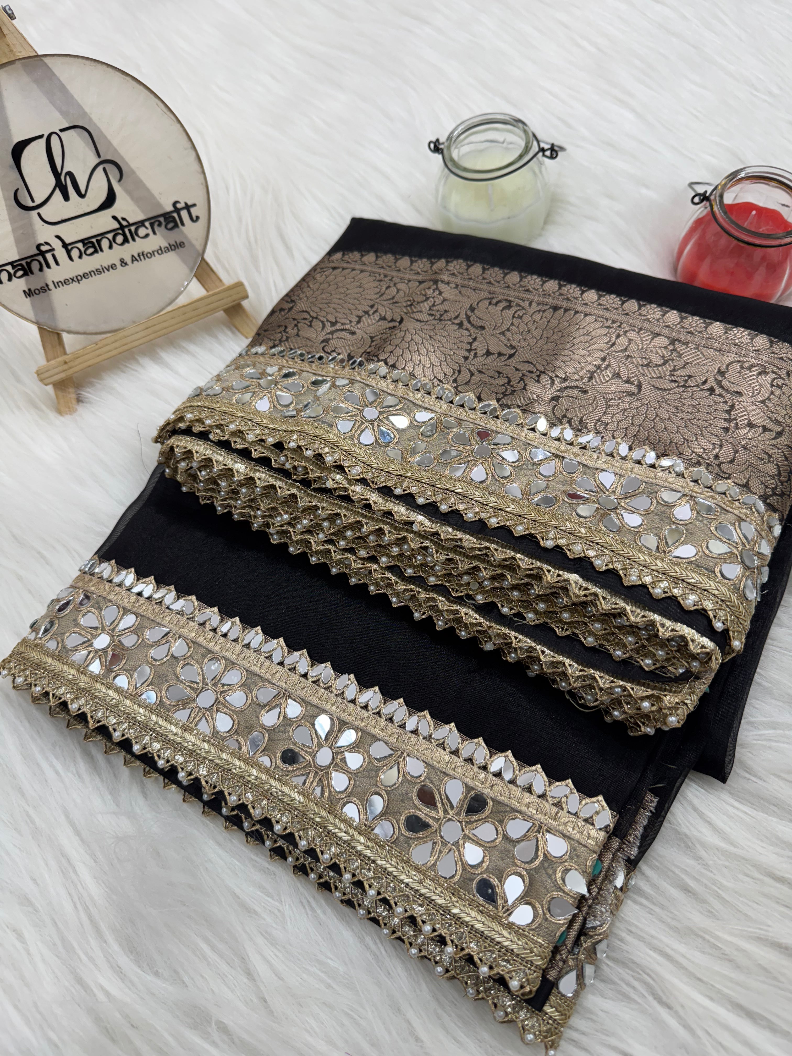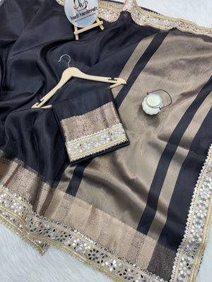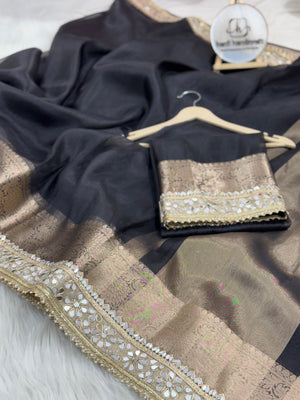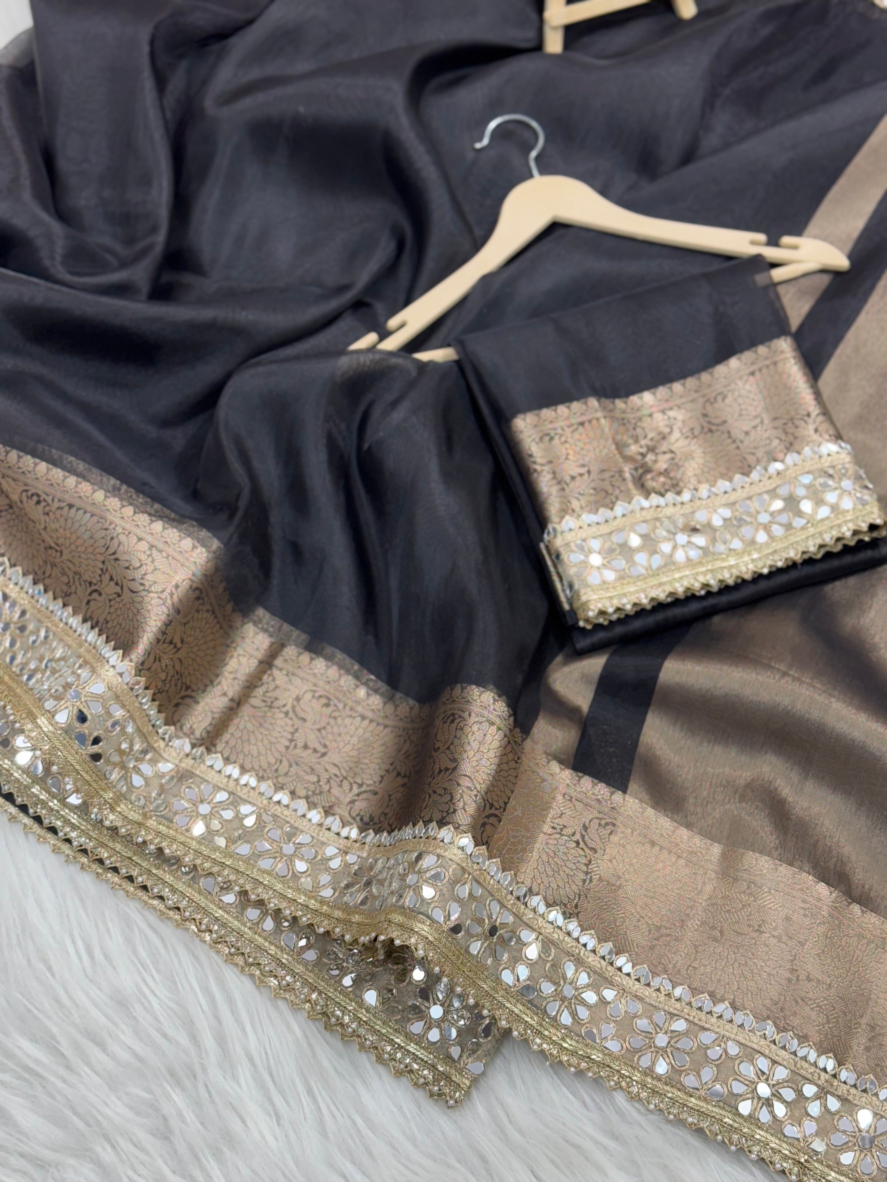Pearl Black Banarasi Rajkumari Mirror Work Tissue Silk Saree
