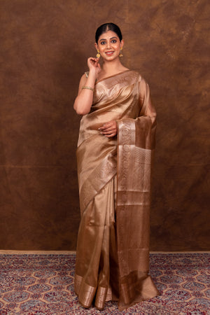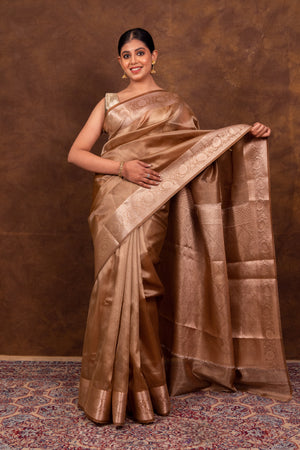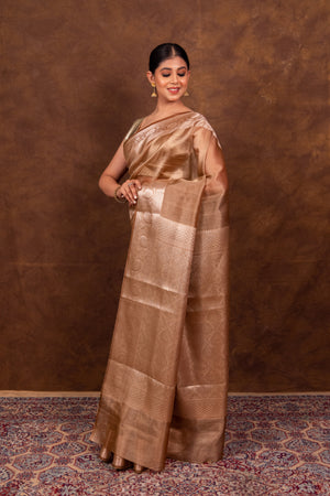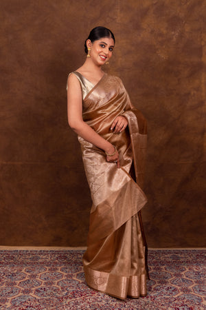 Coffee Brown Banarasi Authentic Soft Tissue Silk Saree with Rich Pallu Woven Design