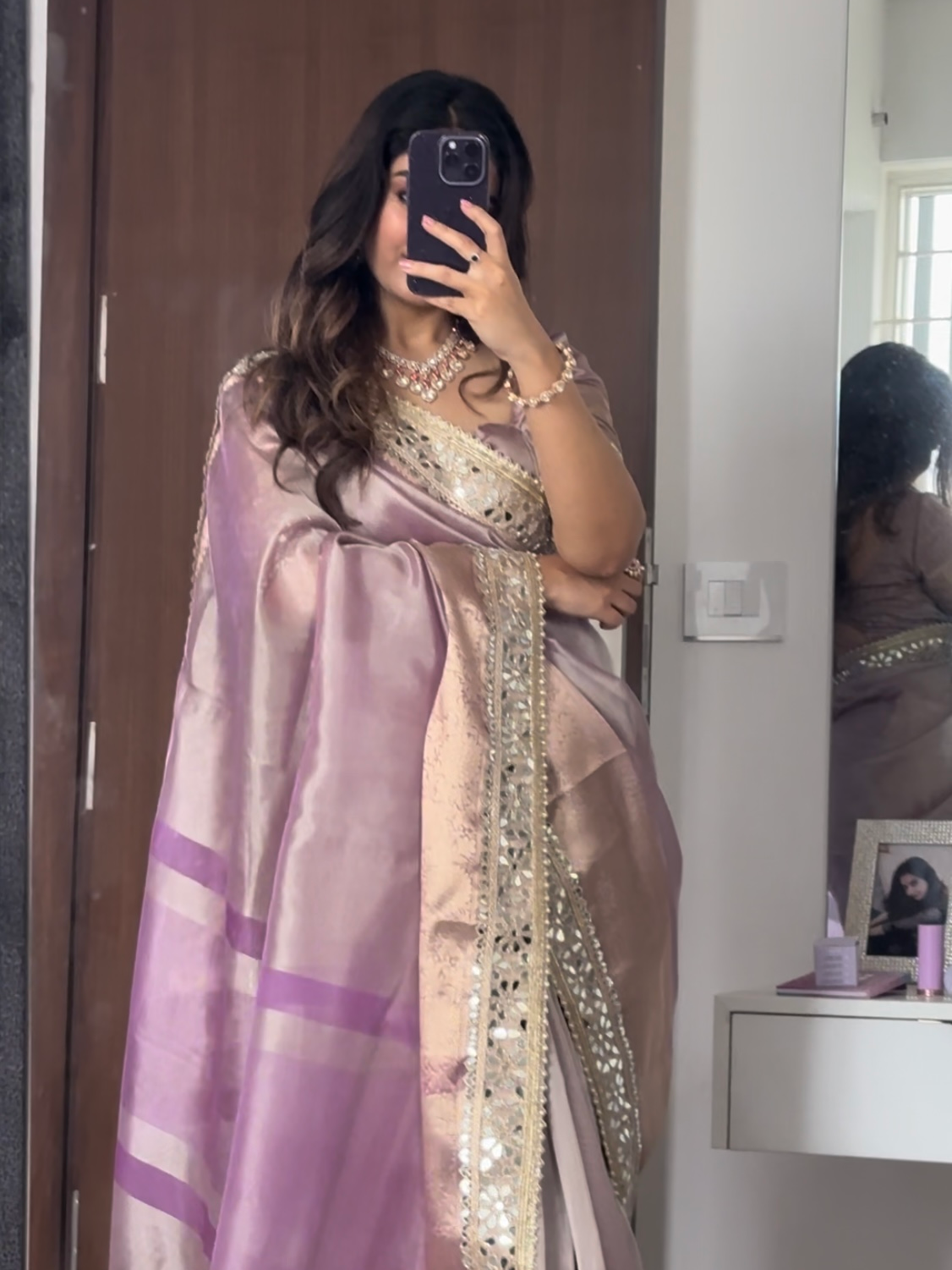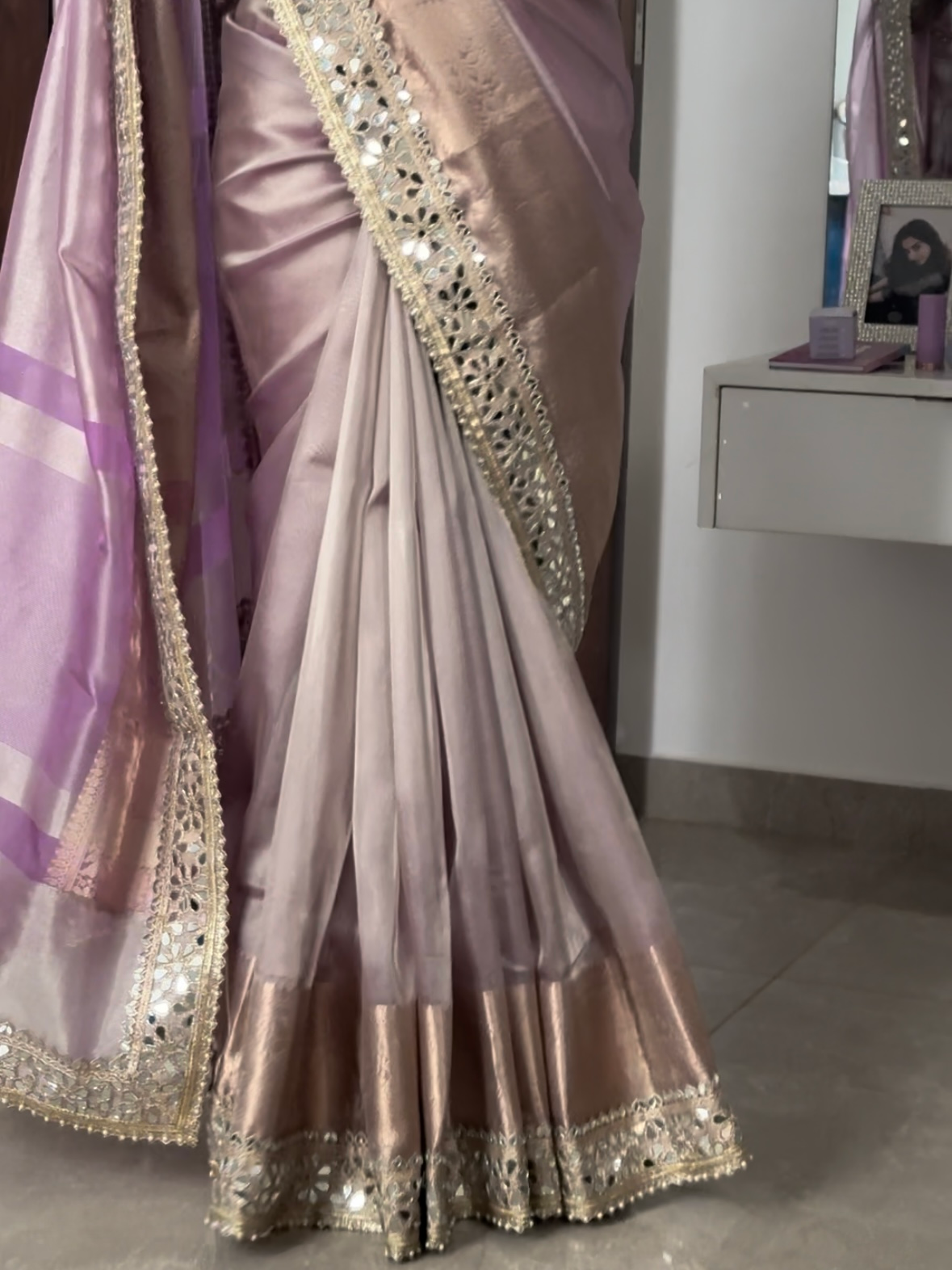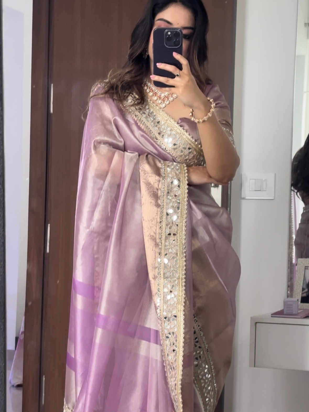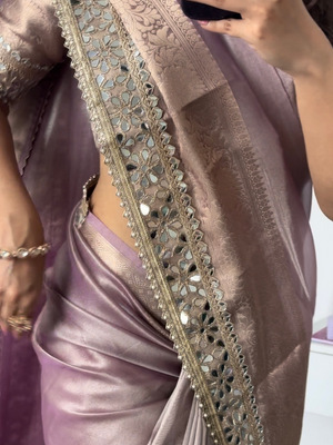 Lilac Purple Banarasi Rajkumari Mirror Work Tissue Silk Saree