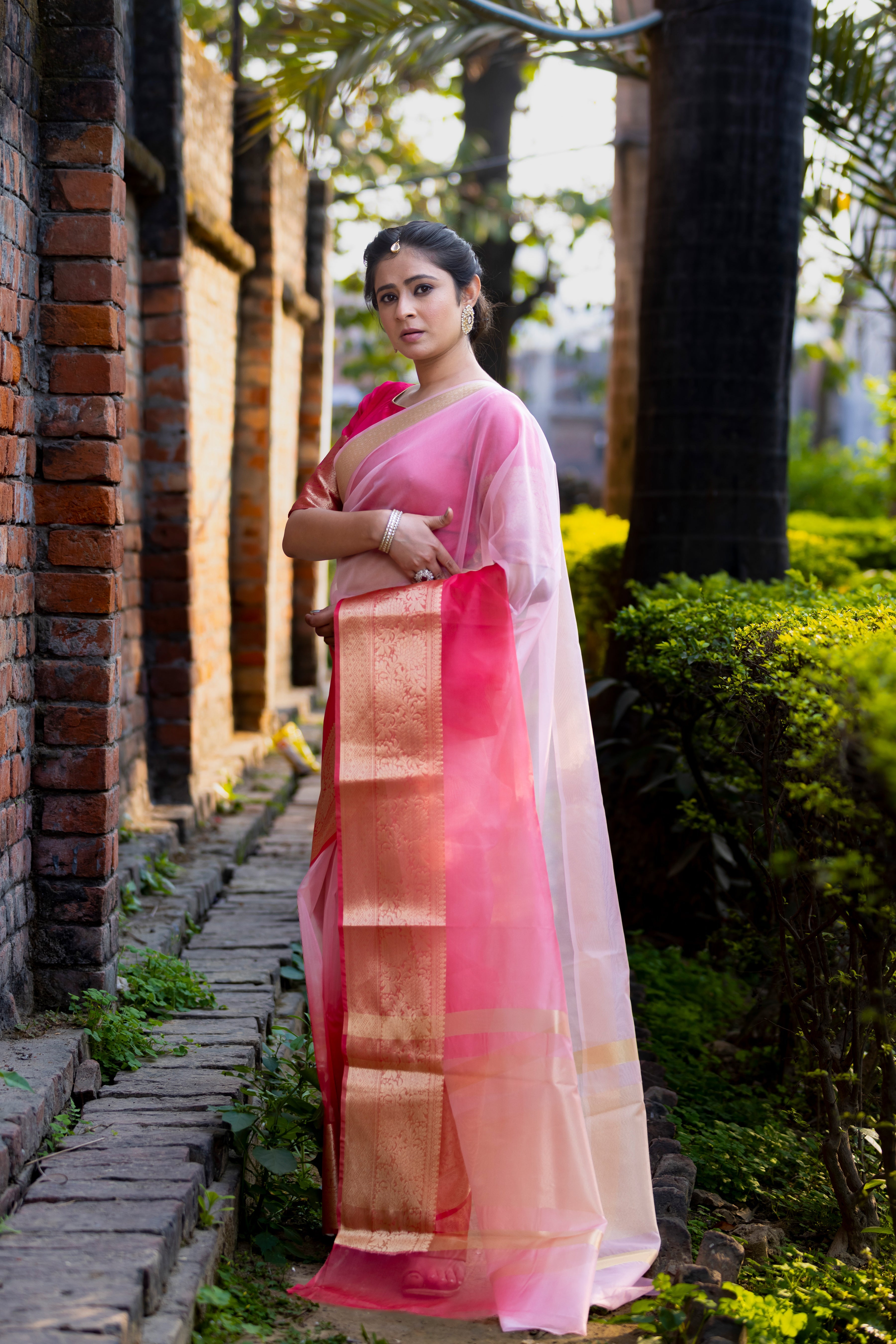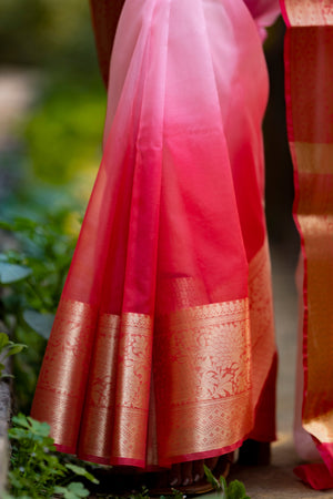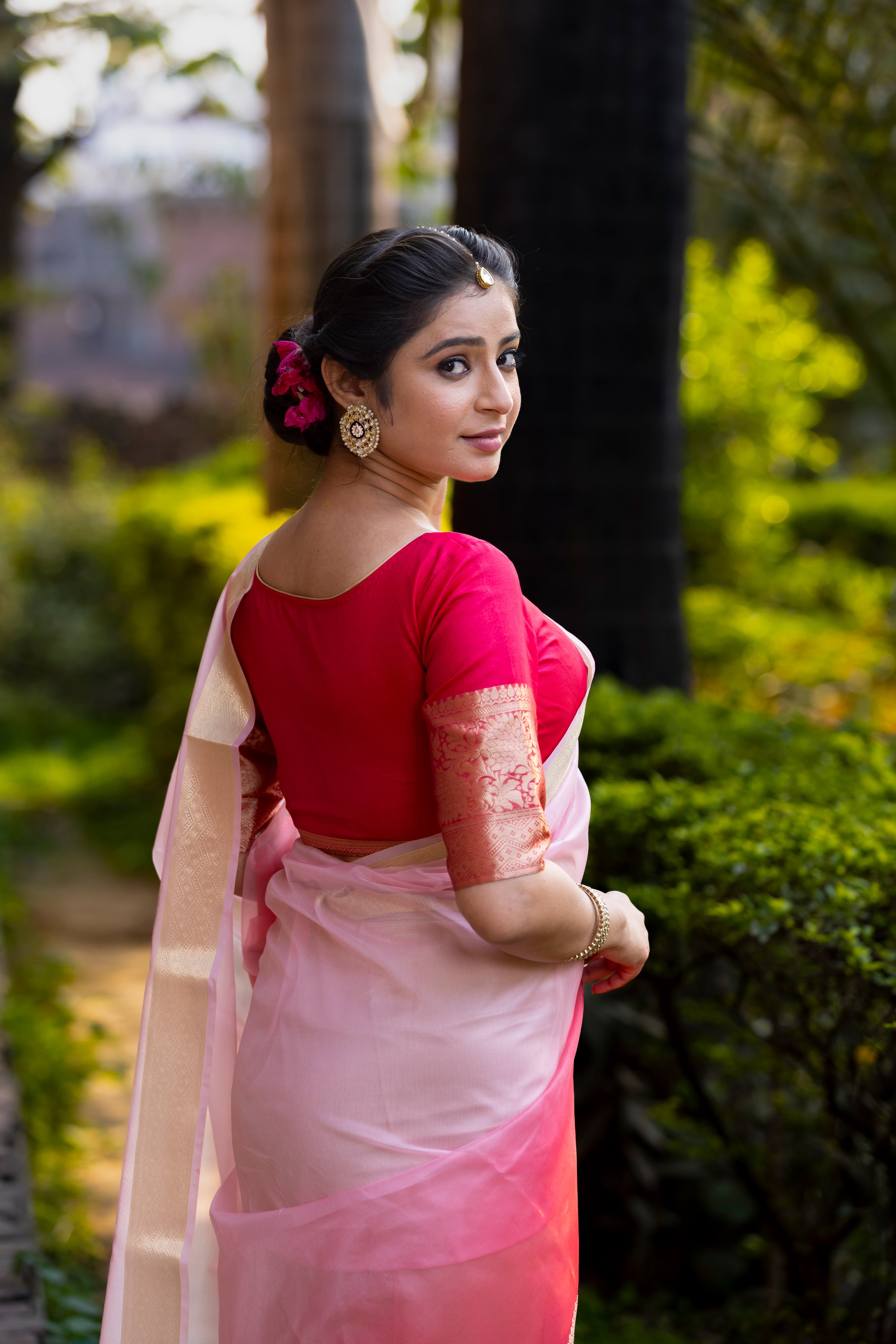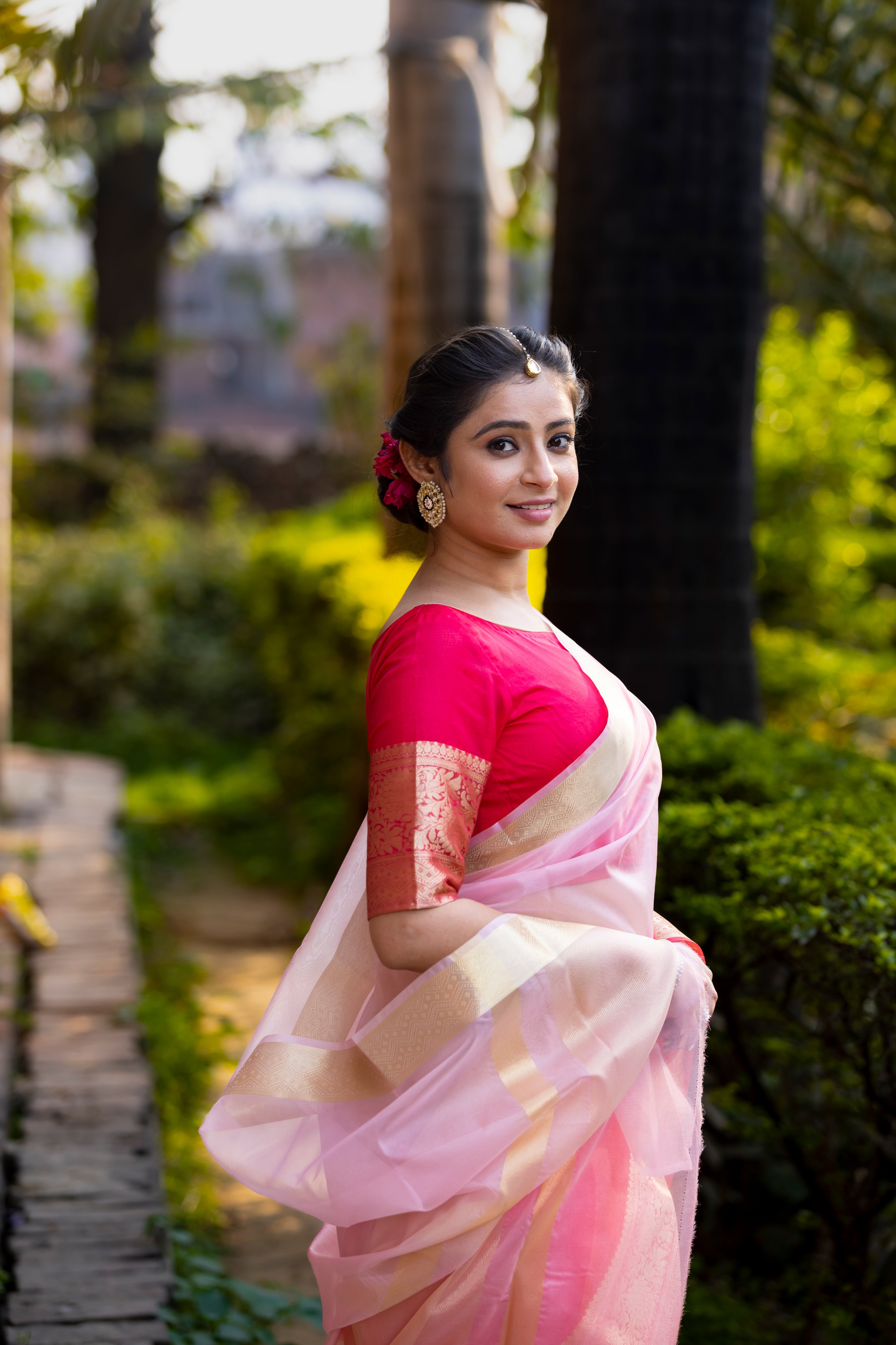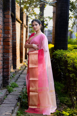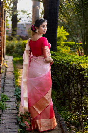 Rani Blush Pink Banarasi Woven Soft Organza Skirt Border Saree