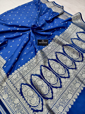 Royal blue Aesthetic Banarasi Mashru Silk Soft Saree | Chunri Buti Saree