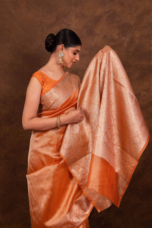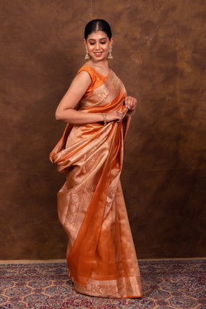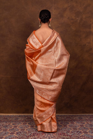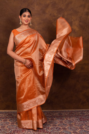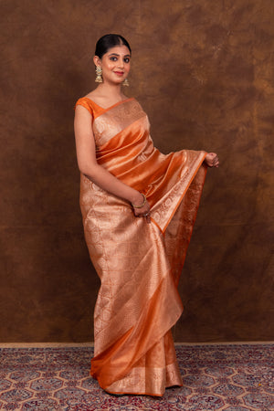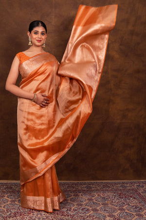 Rust Orange Banarasi Authentic Soft Tissue Silk Saree with Rich Pallu Woven Design