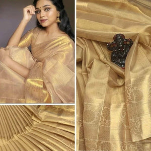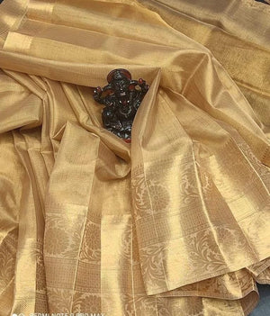 Sona Gold Banarasi Soft Tissue Silk Saree | Tissue Saree For Party, Wedding & Festivals