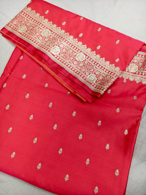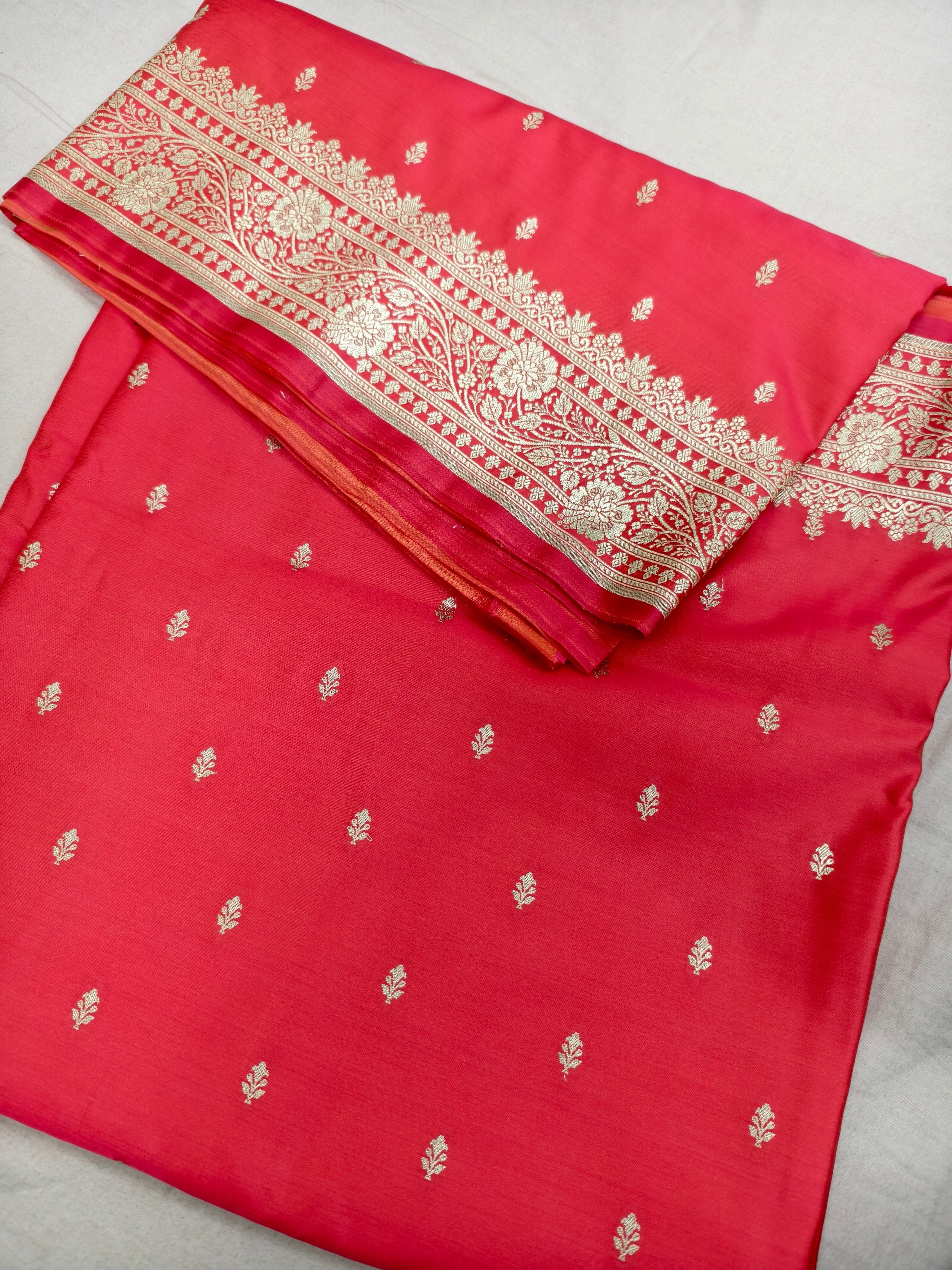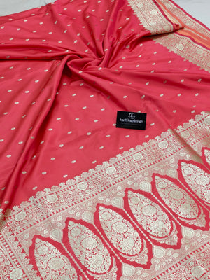 Strawberry Pink Aesthetic Banarasi Mashru silk soft saree| Chunri Buti Saree