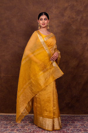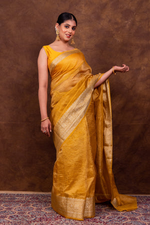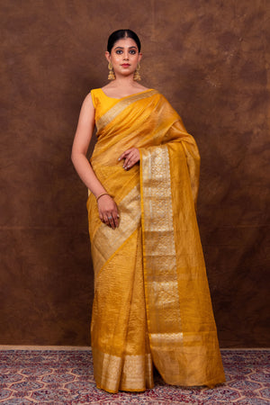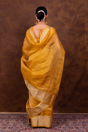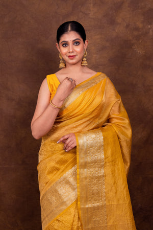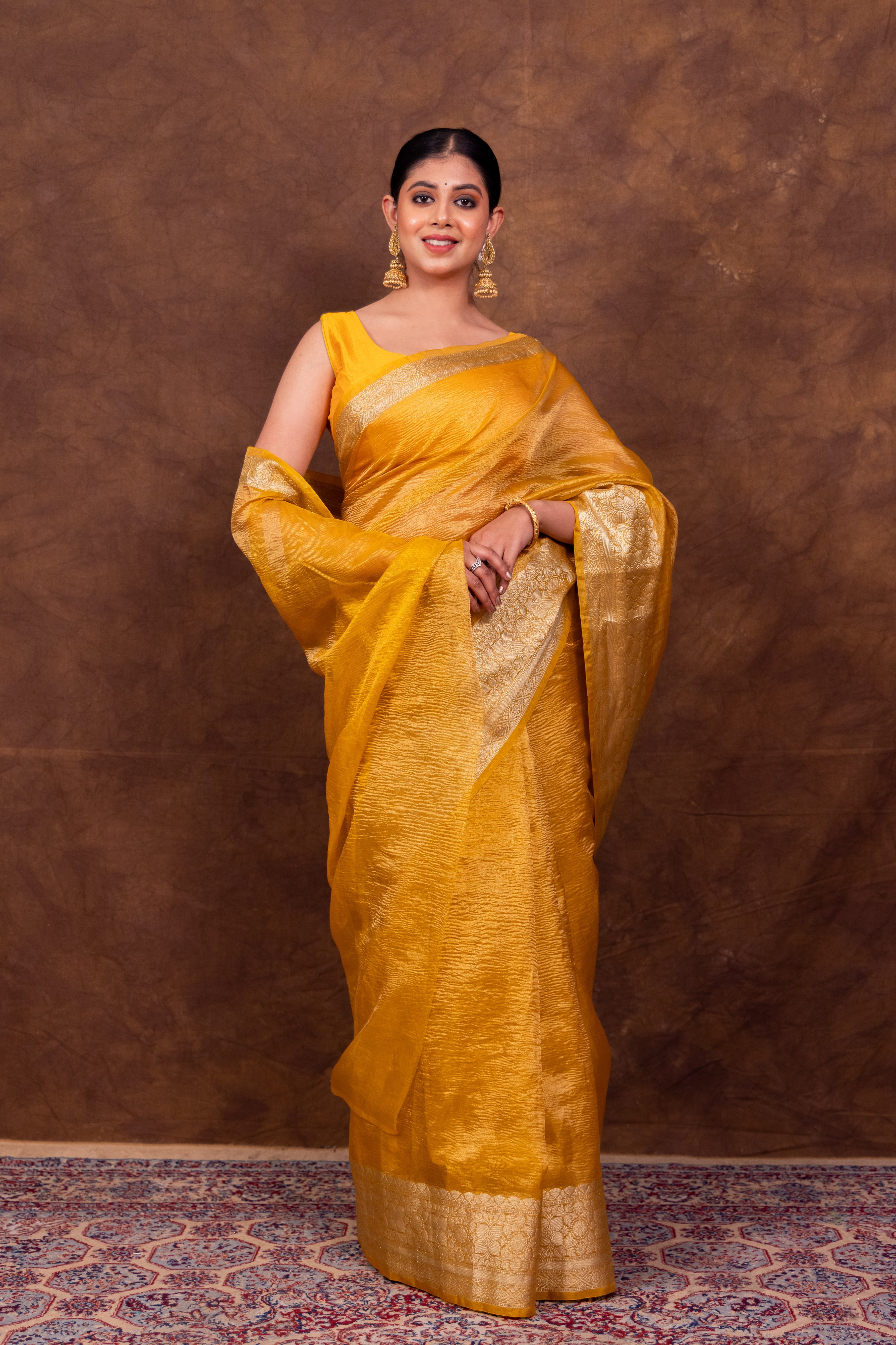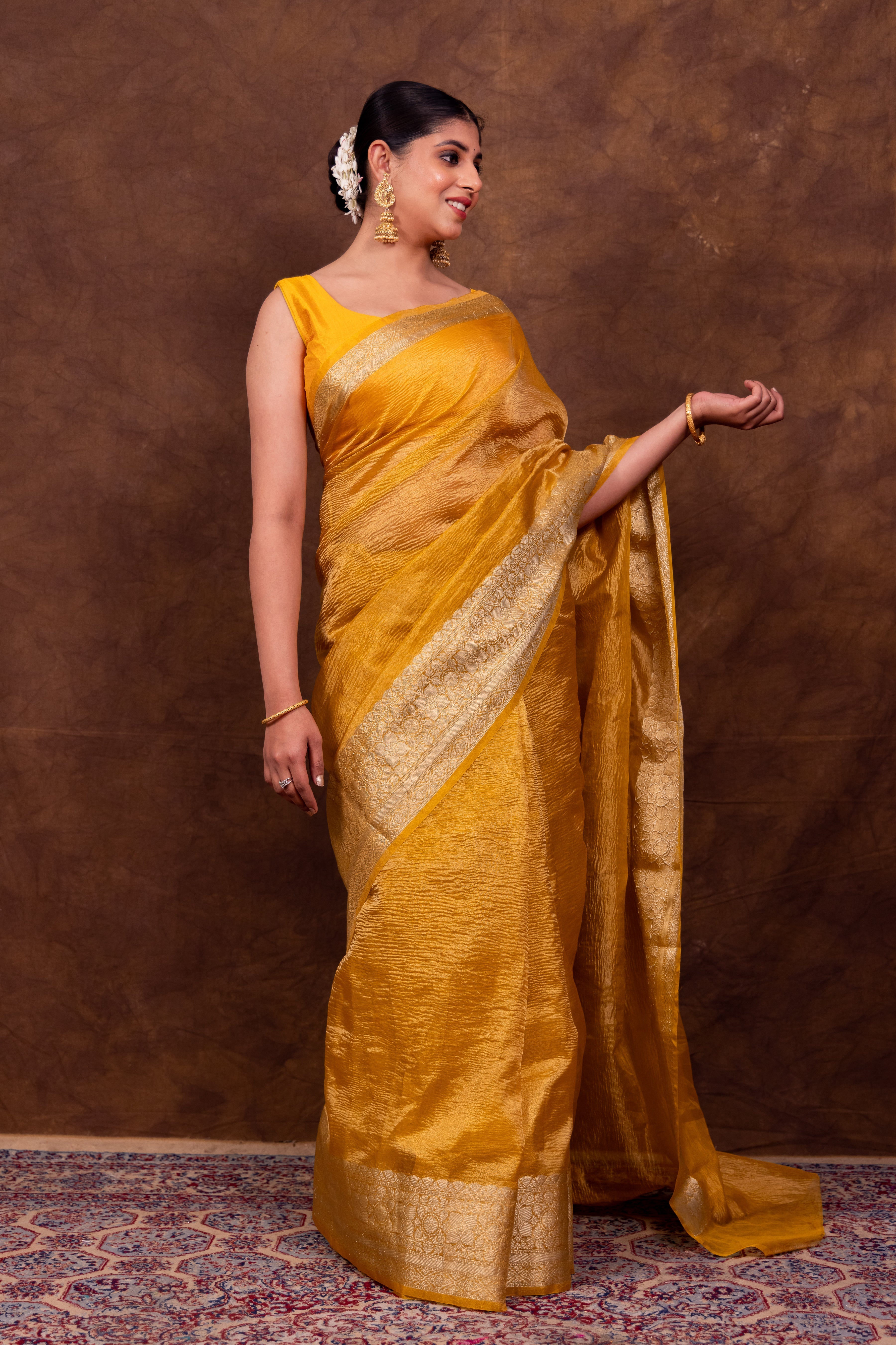 Subtle Gold Crushed Tissue Silk Saree | Banarasi Woven Saree
