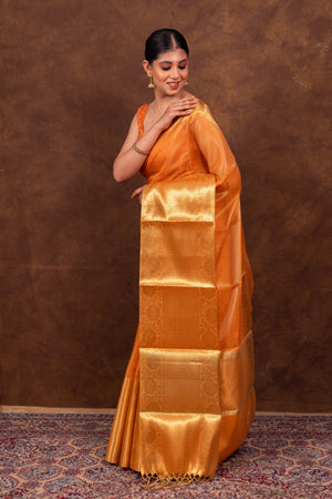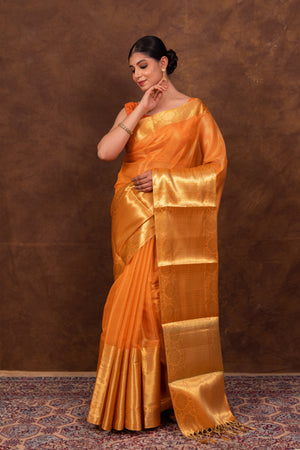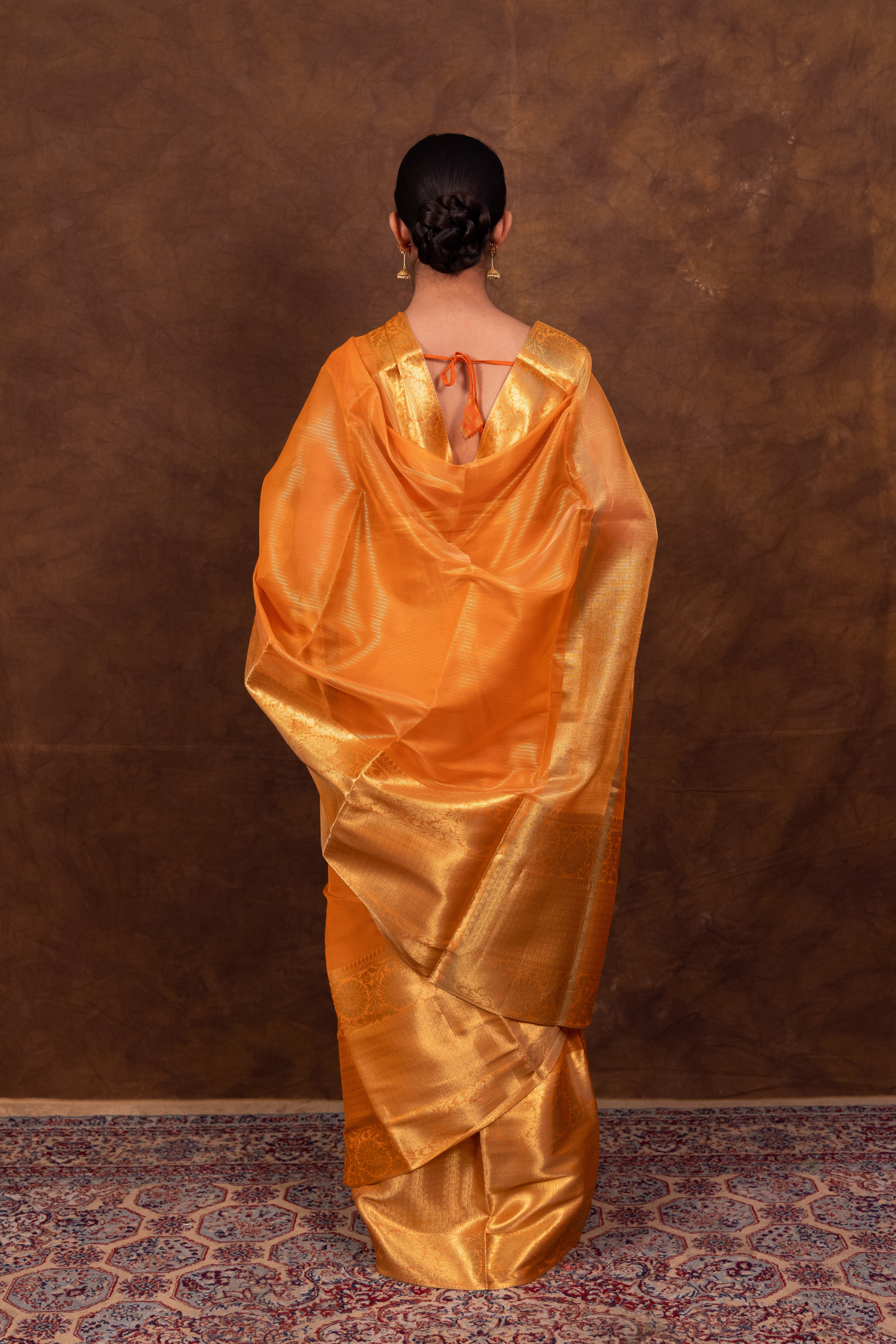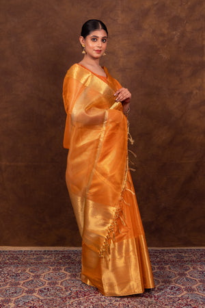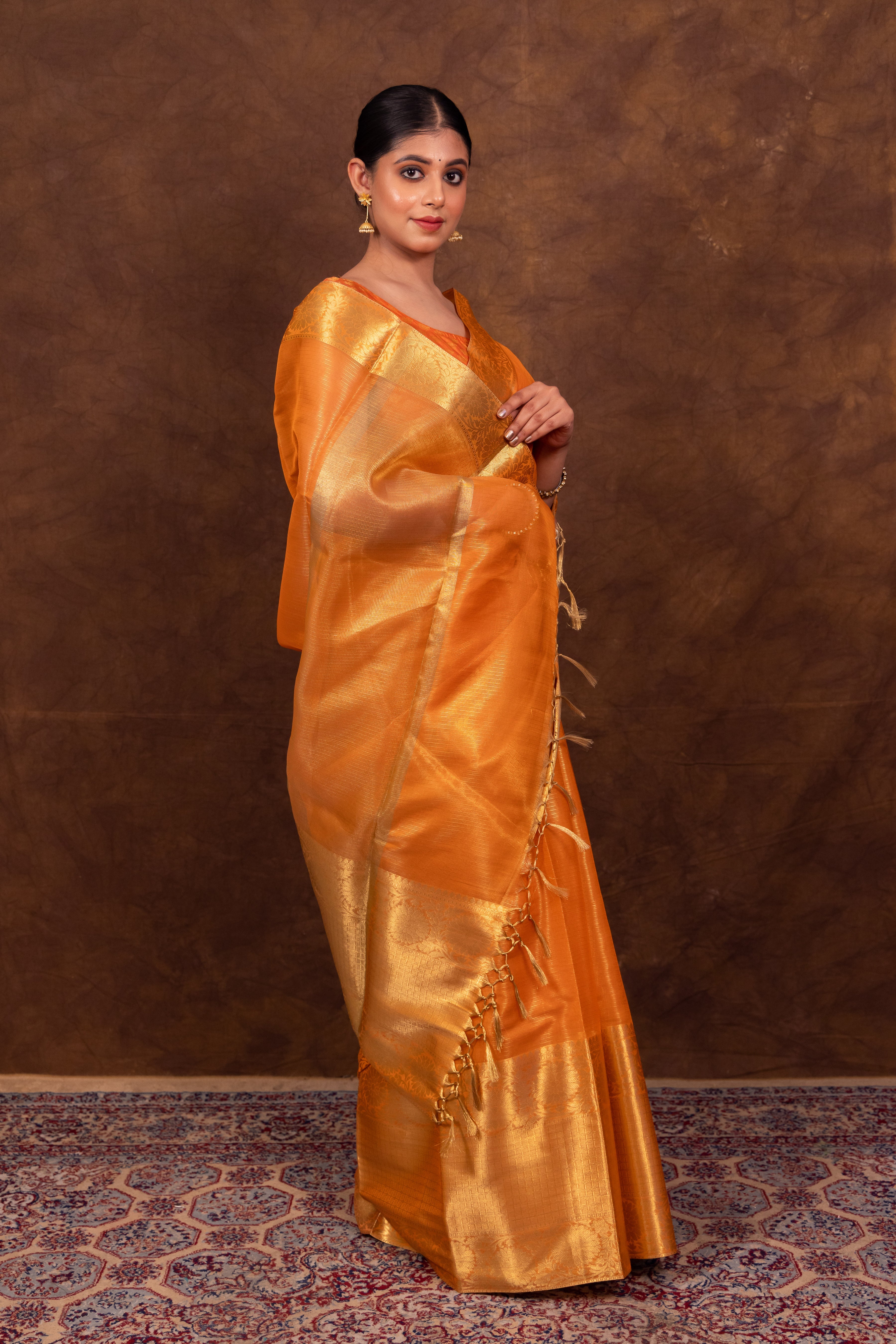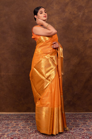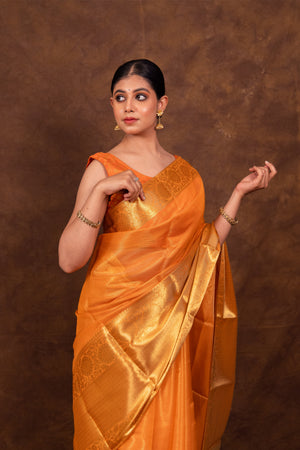 Coral Orange Banarasi Woven Soft Tissue Silk Saree From Hanfi Handicraft